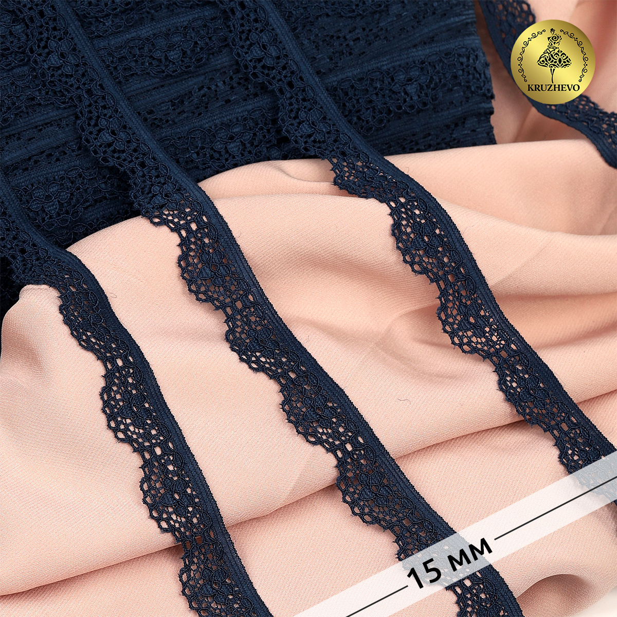 Кружево эластичное (стрейч) 15 мм 8031, цв.S919 синий сапфир уп.50м, Kruzhevo