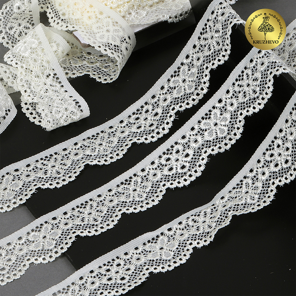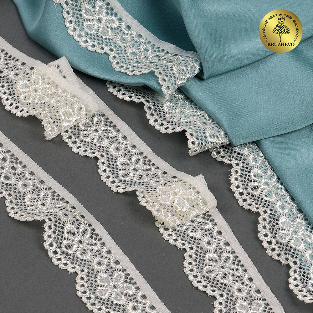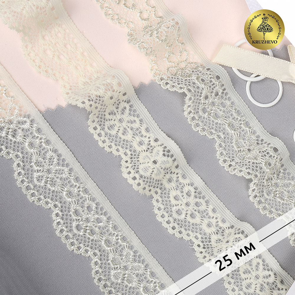 Кружево эластичное (стрейч) 25 мм, 8032, цв.03 сумрачно-белый уп.50м, Kruzhevo