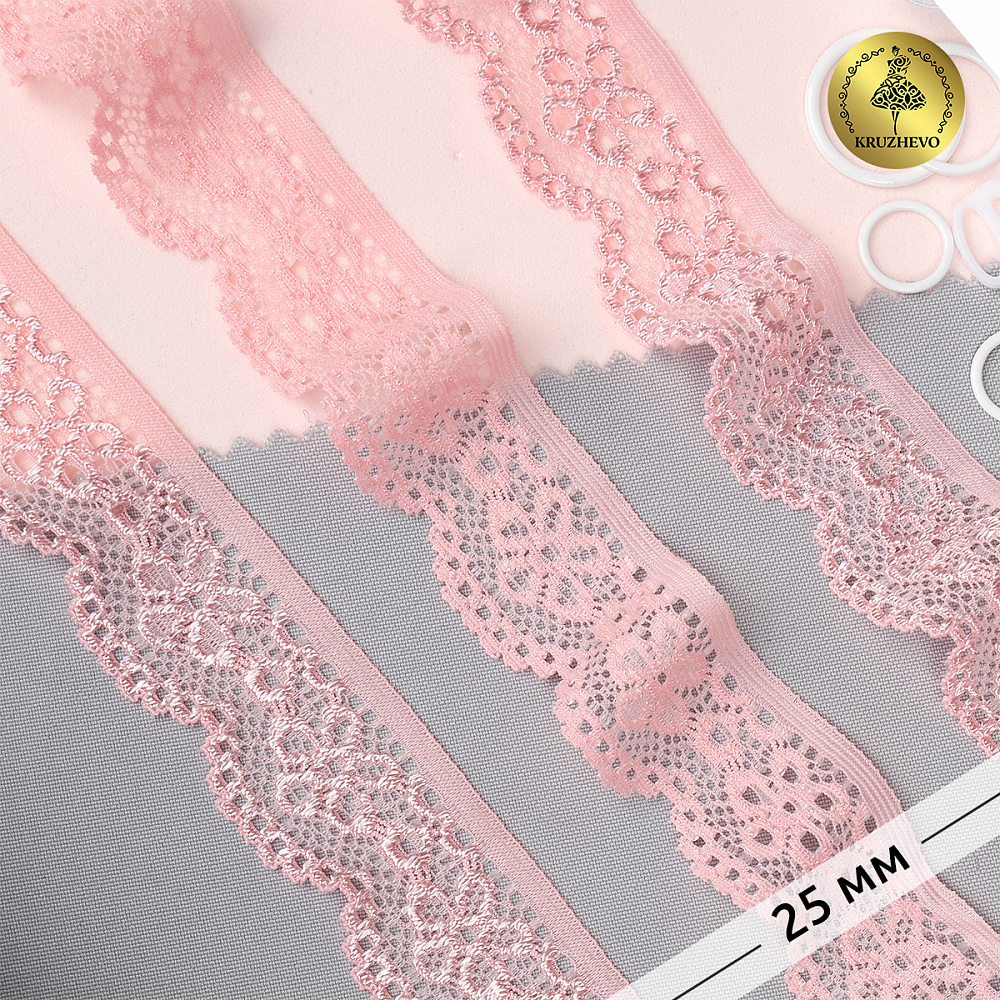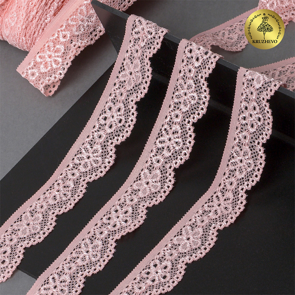 Кружево эластичное (стрейч) 25 мм, 8032, цв.152 коралловый уп.50м, Kruzhevo