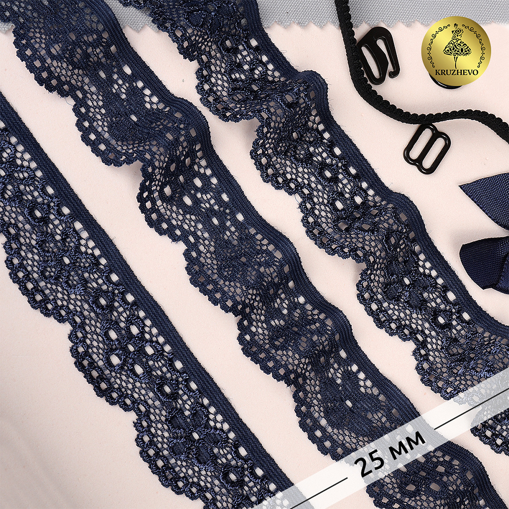 Кружево эластичное (стрейч) 25 мм, 8032, цв.225 синий сапфир уп.50м, Kruzhevo