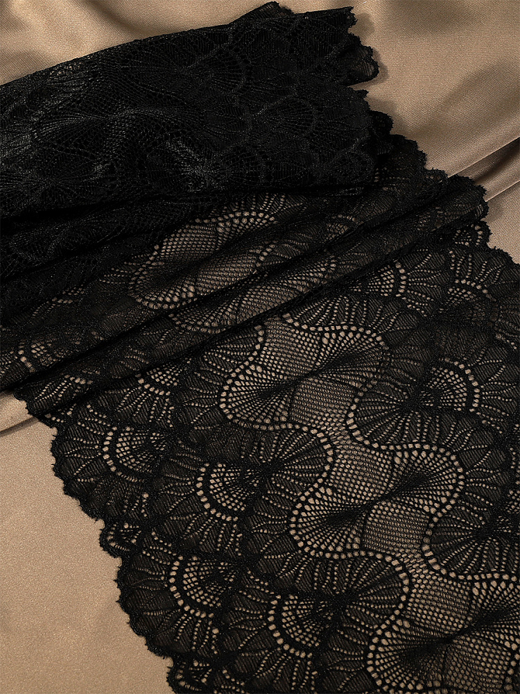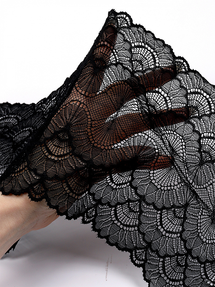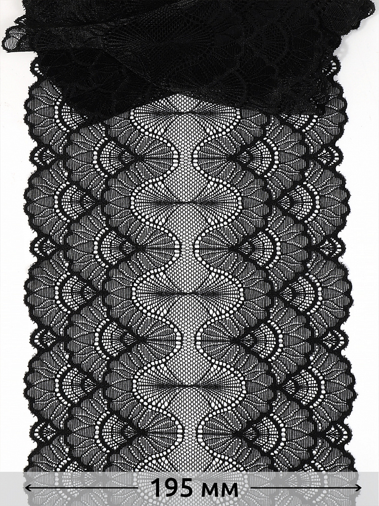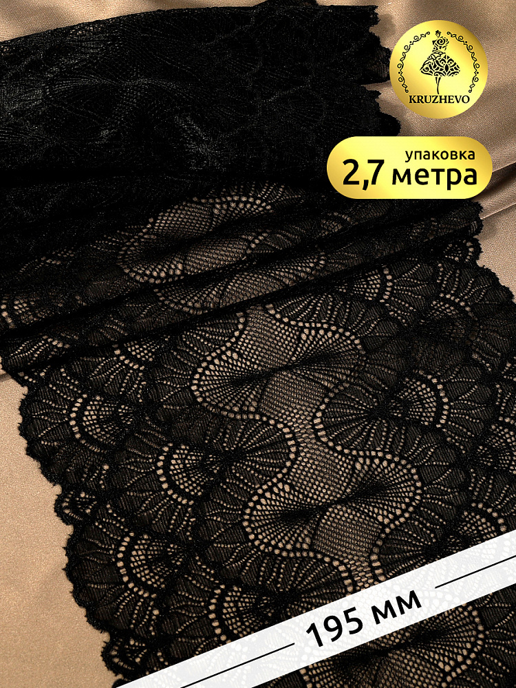 Кружево бельевое эластичное 195 мм / 2.7 м, 8034, цв.02 черный, Kruzhevo