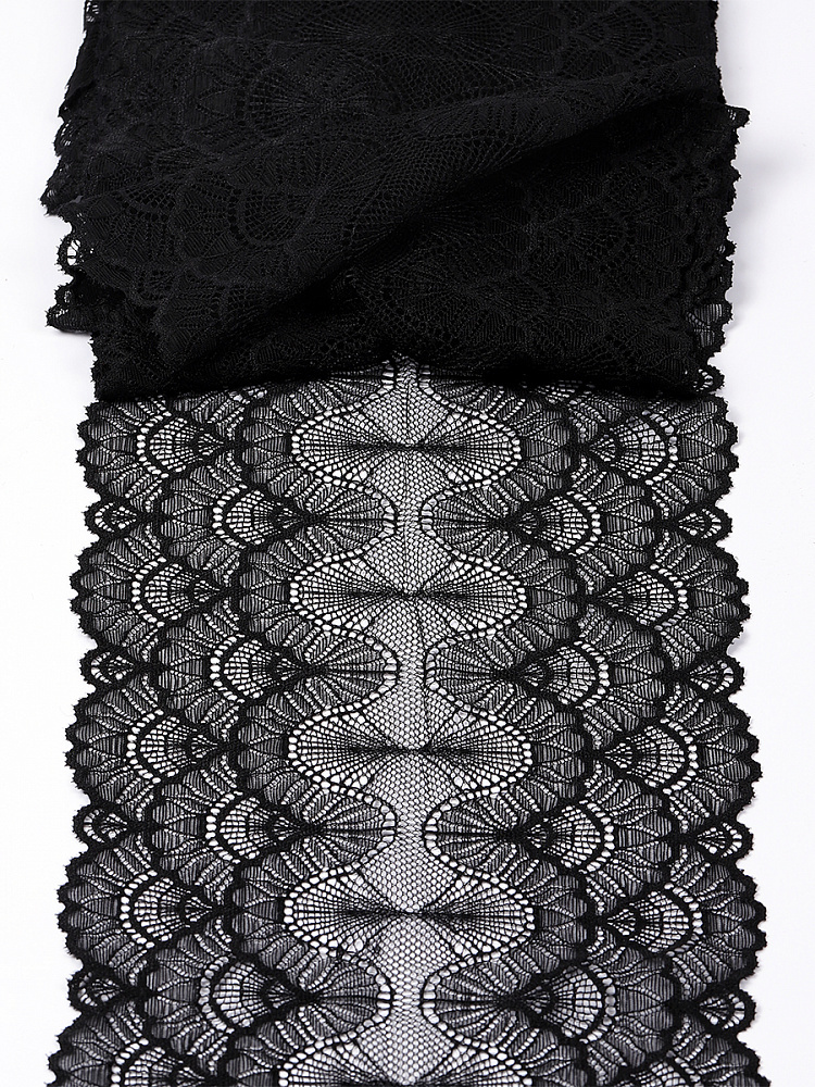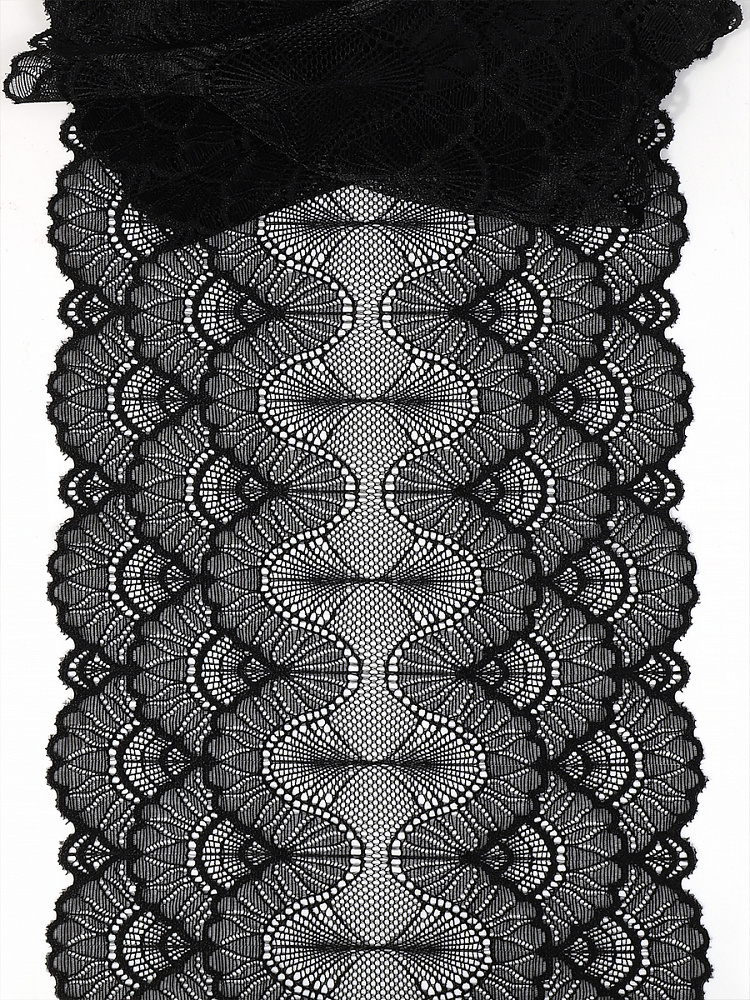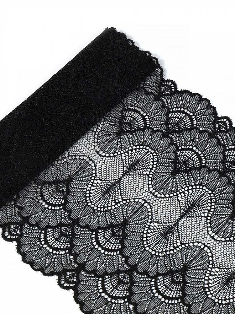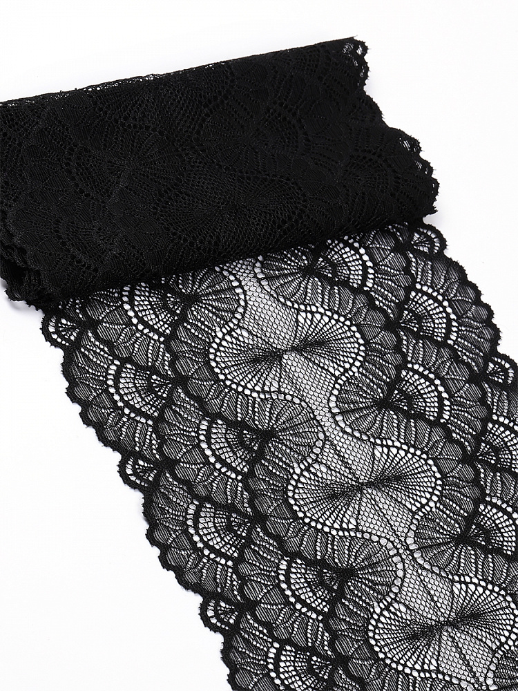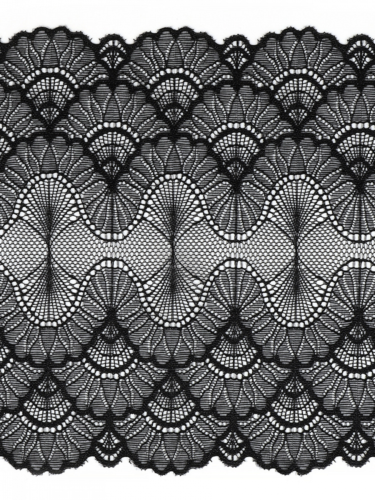 Кружево бельевое эластичное 195 мм / 2.7 м, 8034, цв.02 черный, Kruzhevo