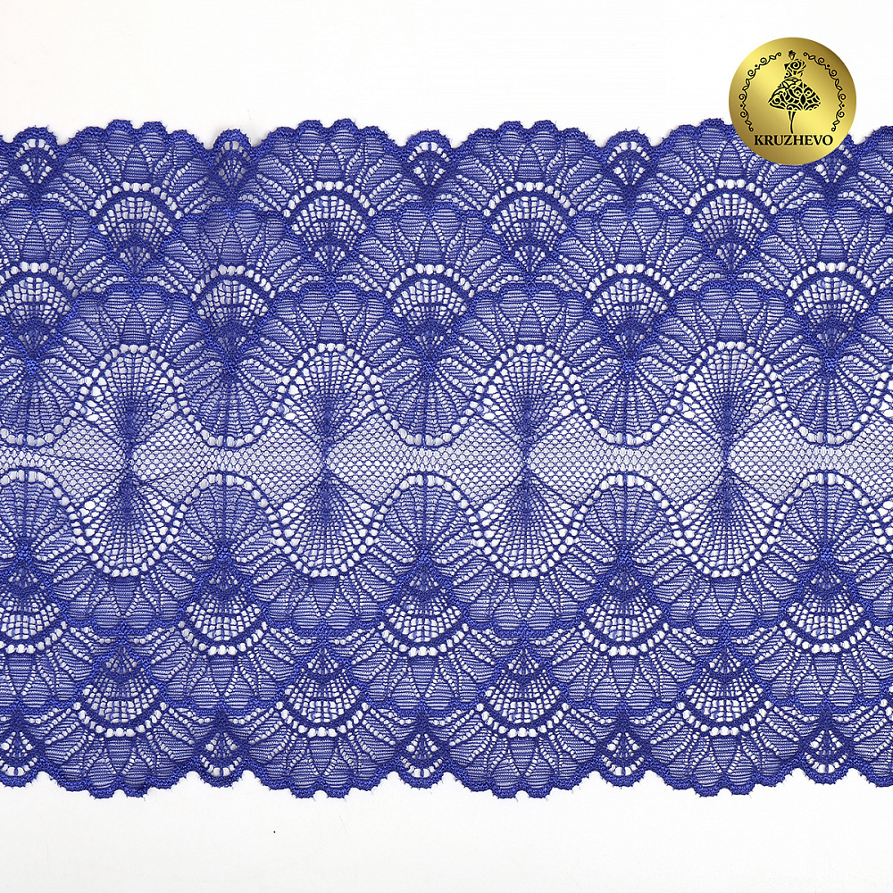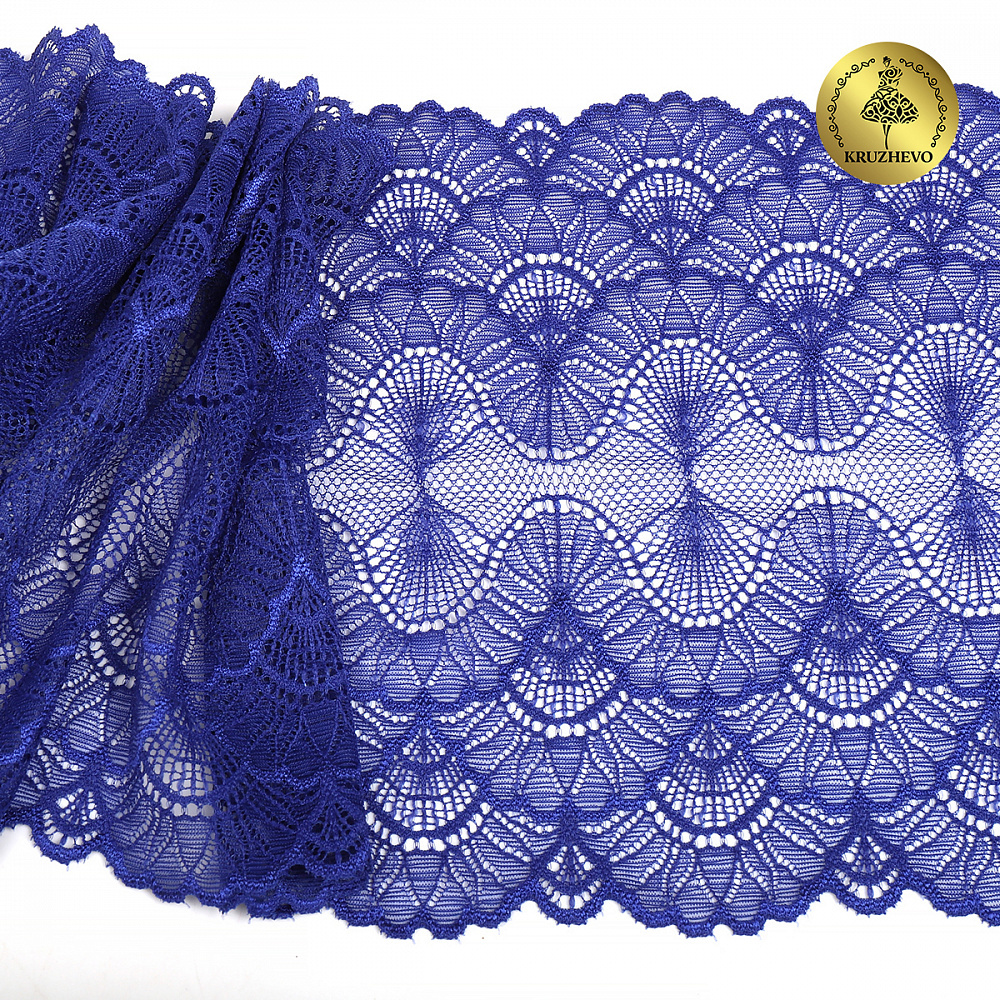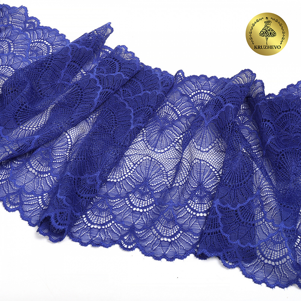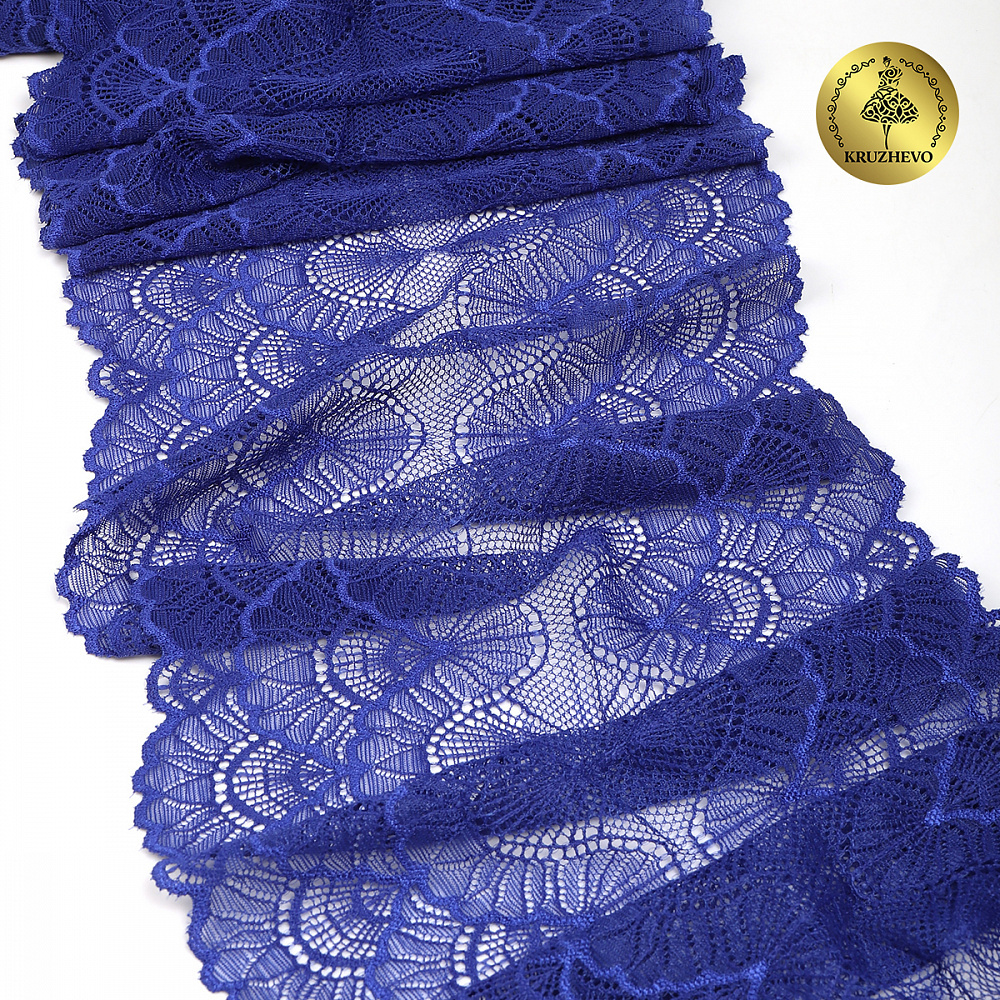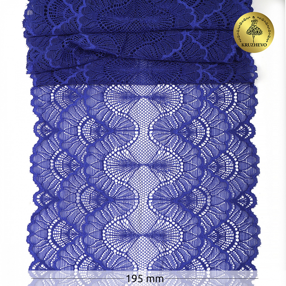Кружево эластичное (стрейч) 8034 195мм цв.F223 синий ультрамарин, 10 метров, Kruzhevo