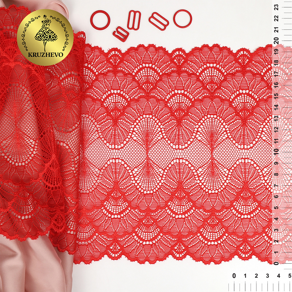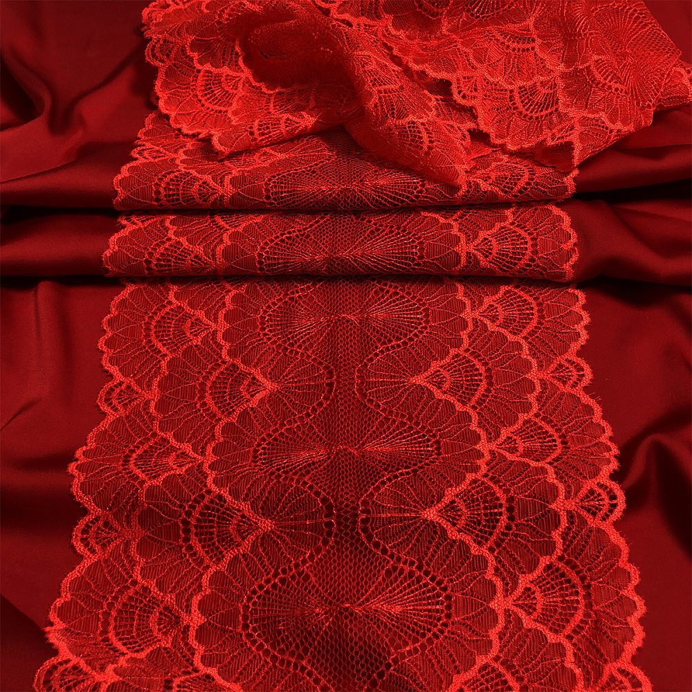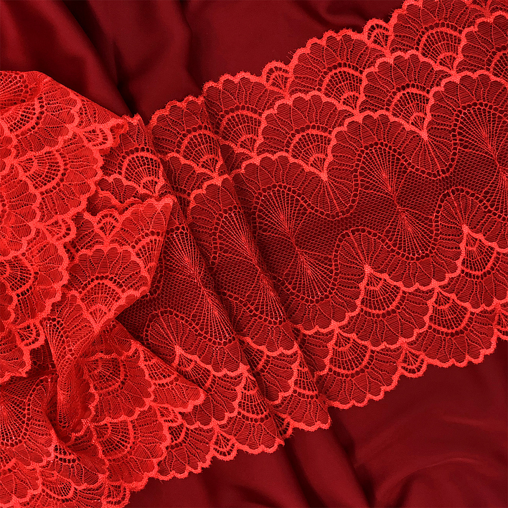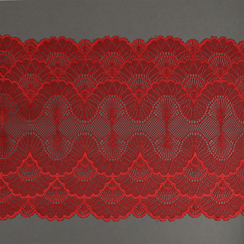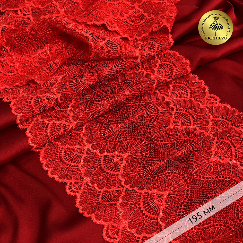 Кружево эластичное (стрейч) 8034 195мм цв.SD163 красный, 3м, Kruzhevo