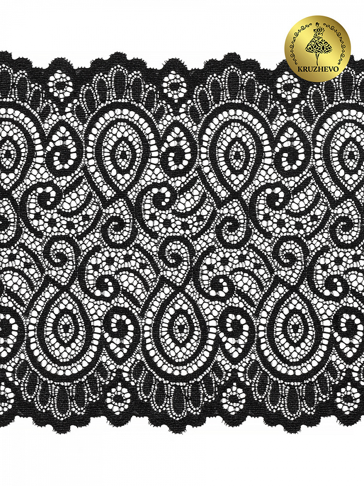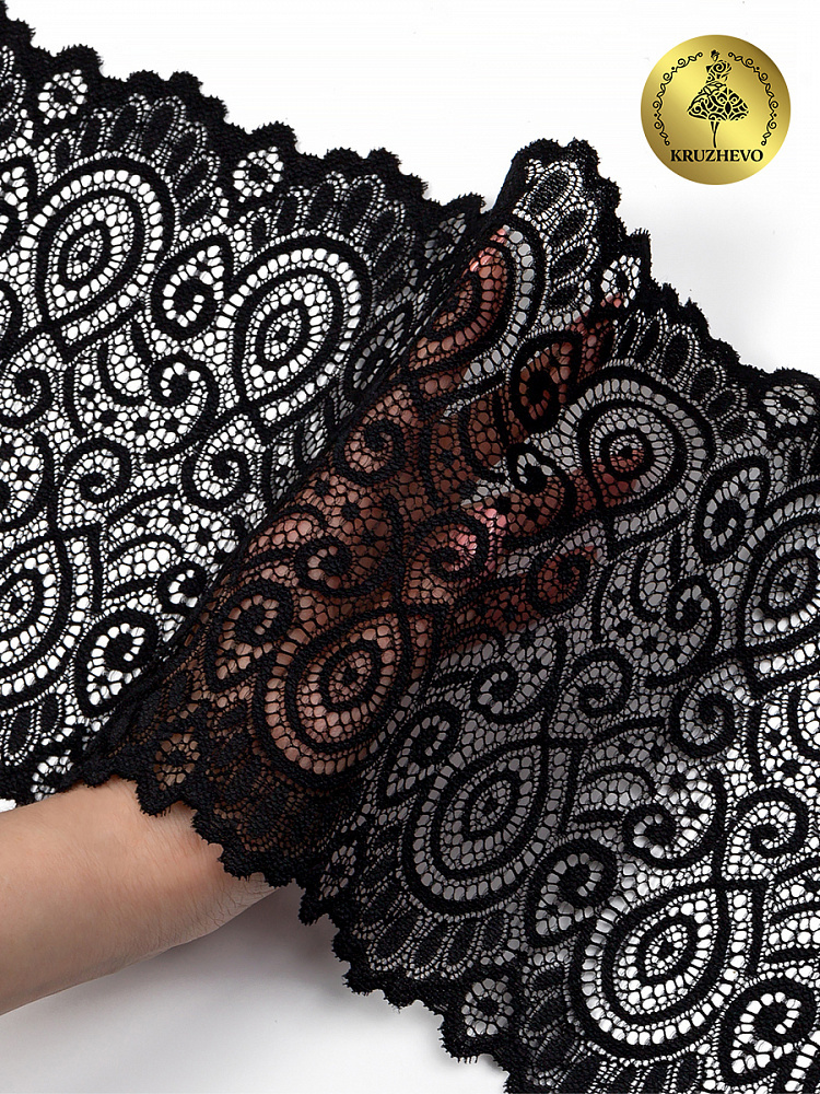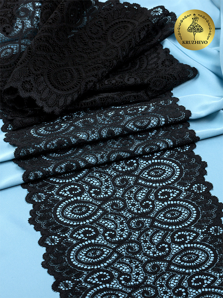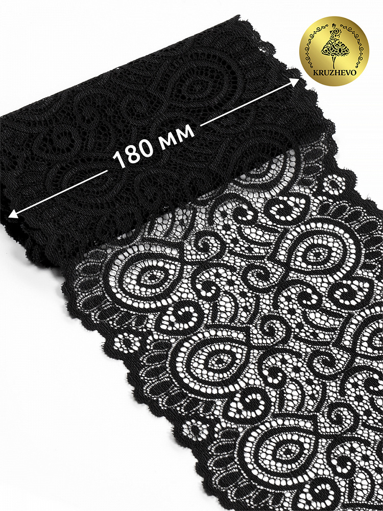 Кружево эластичное (стрейч) L1351 180мм цв.003 черный рул.140м, Kruzhevo