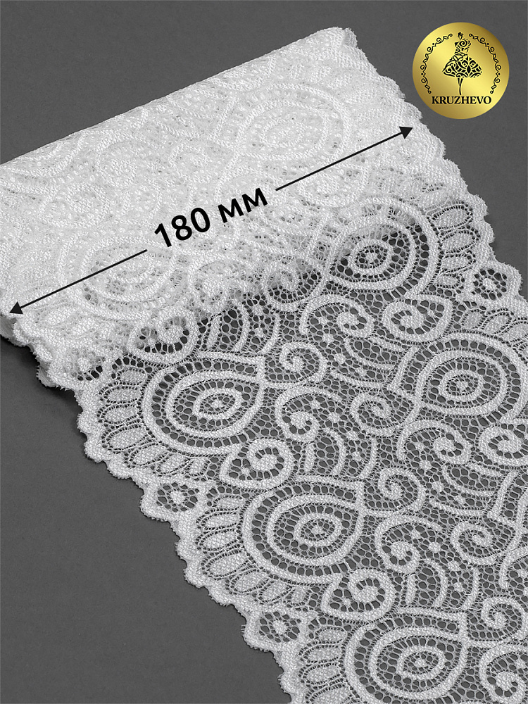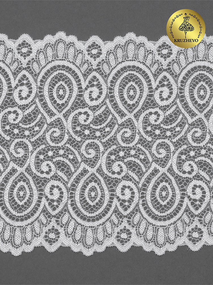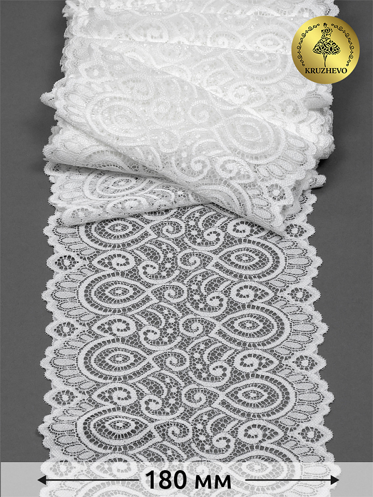 Кружево эластичное (стрейч) L1351 180мм цв.004 сумрачно-белый, 25м, Kruzhevo