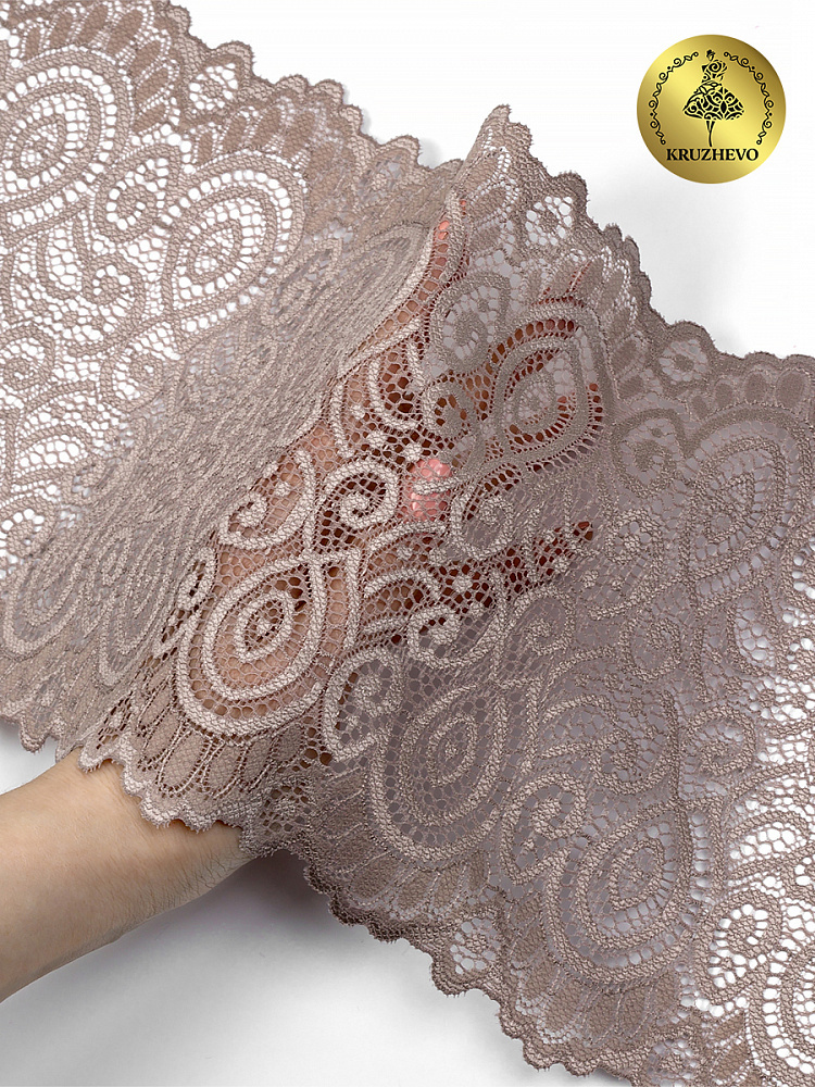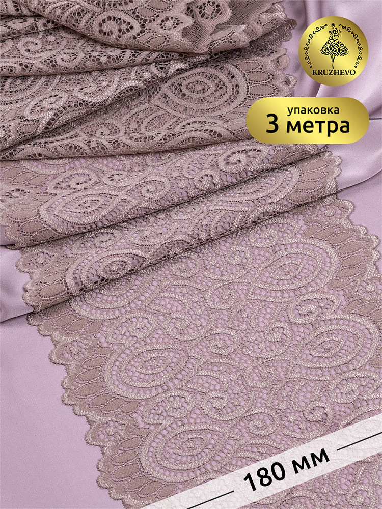 Кружево эластичное (стрейч) L1351 180мм цв.010 капучино, 25м, Kruzhevo
