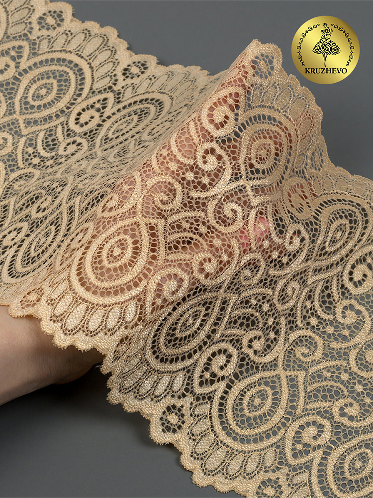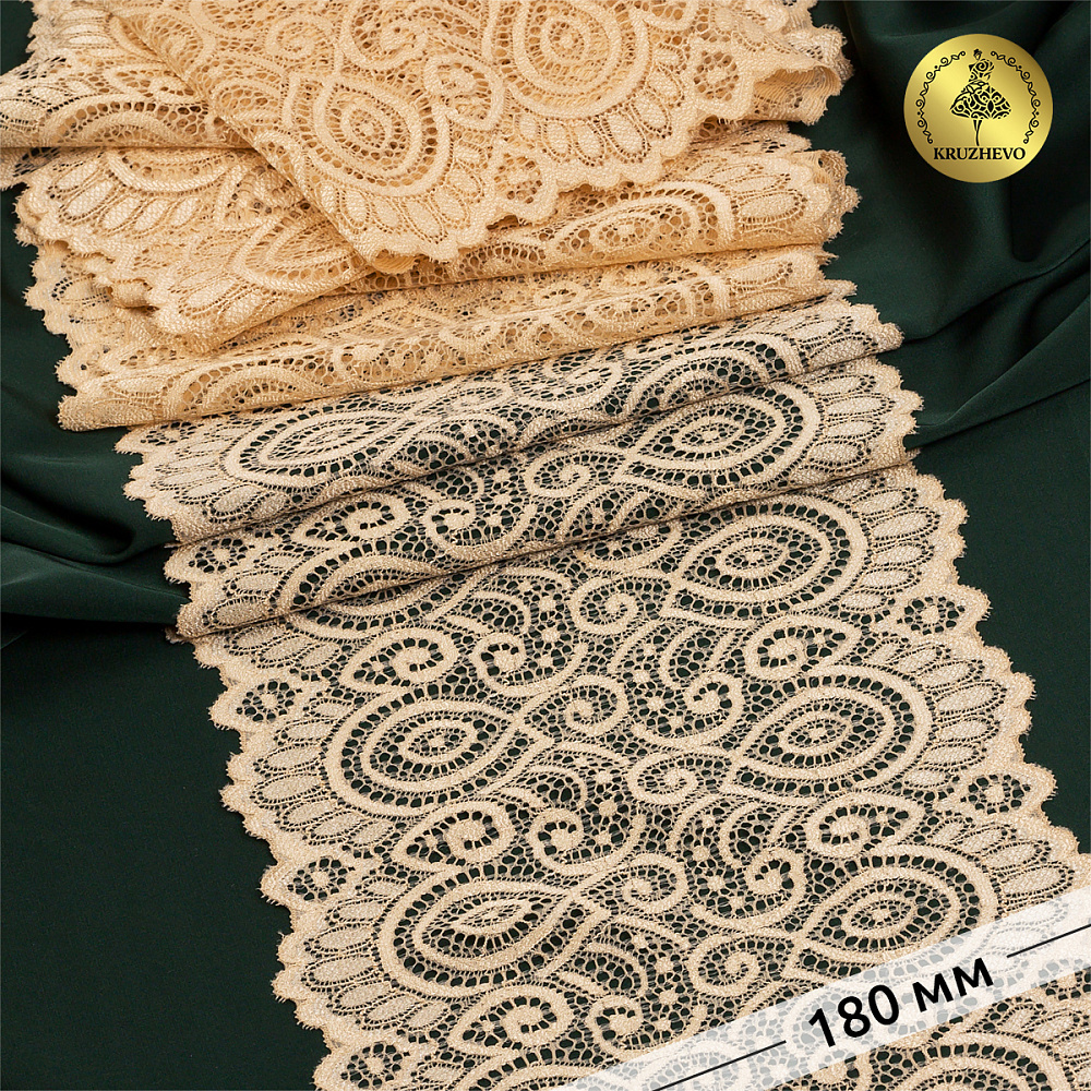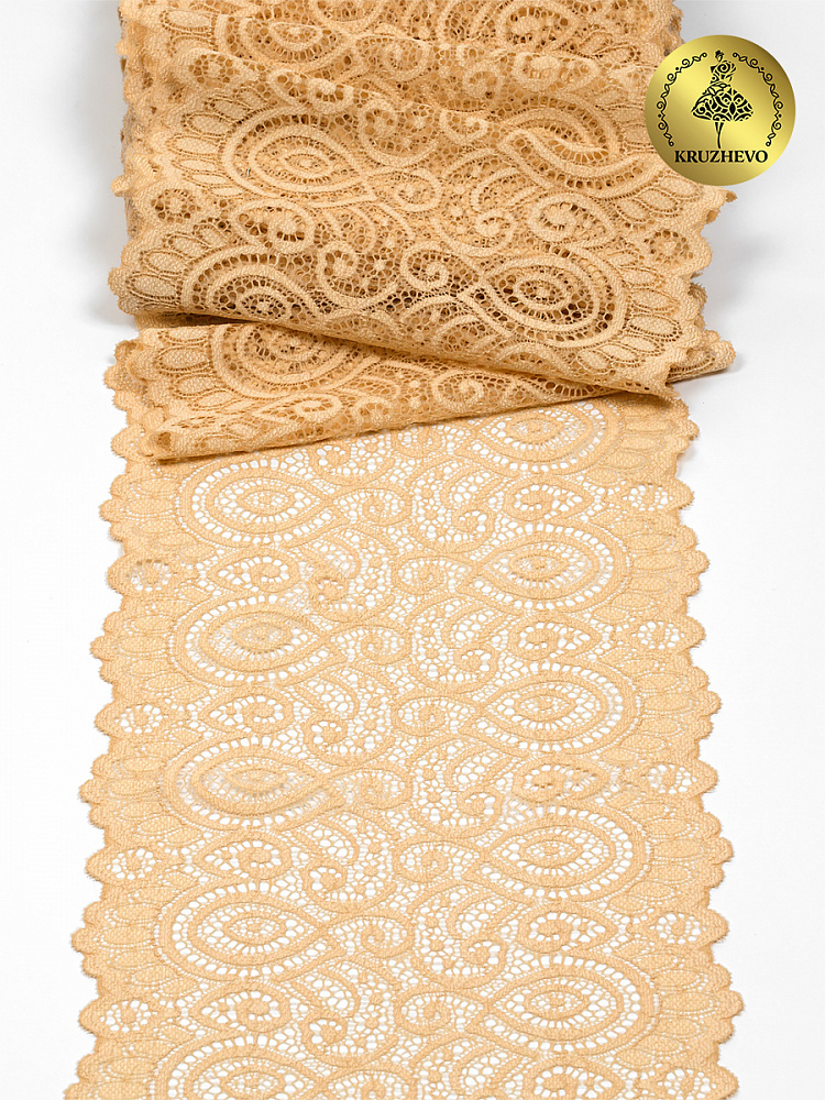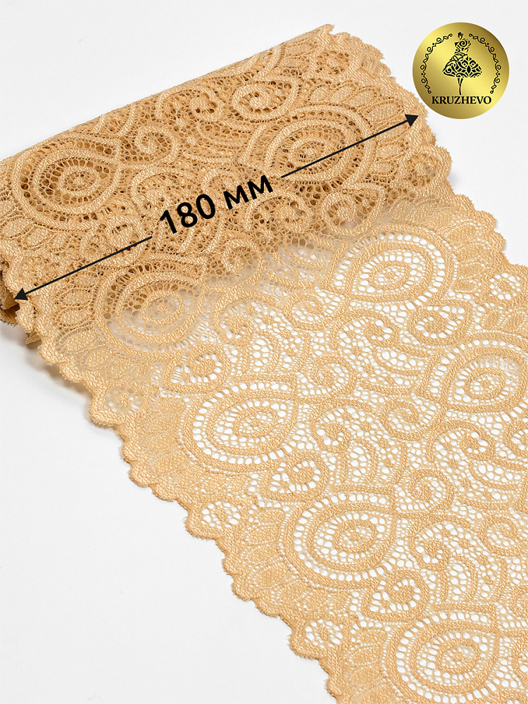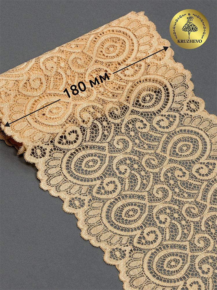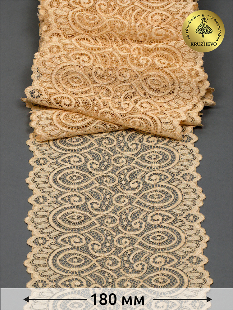 Кружево эластичное (стрейч) L1351 180мм цв.126 бежевый, 25м, Kruzhevo