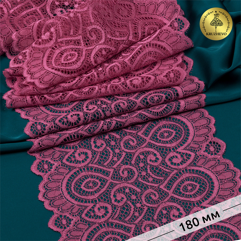 Кружево эластичное (стрейч) L1351 180мм цв.S256 Розовый рубин, 3 метра, Kruzhevo