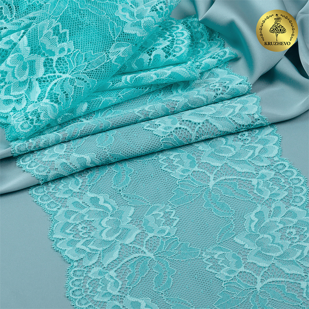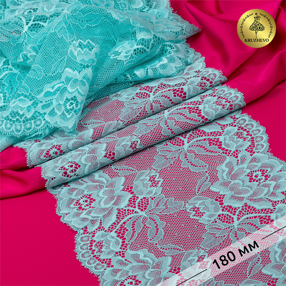 Кружево эластичное (стрейч) L838 180мм цв.04 мятный, 25 м, Kruzhevo