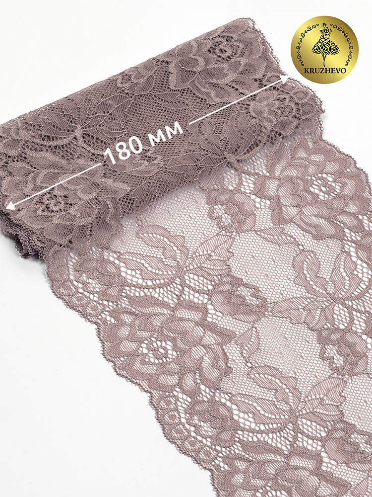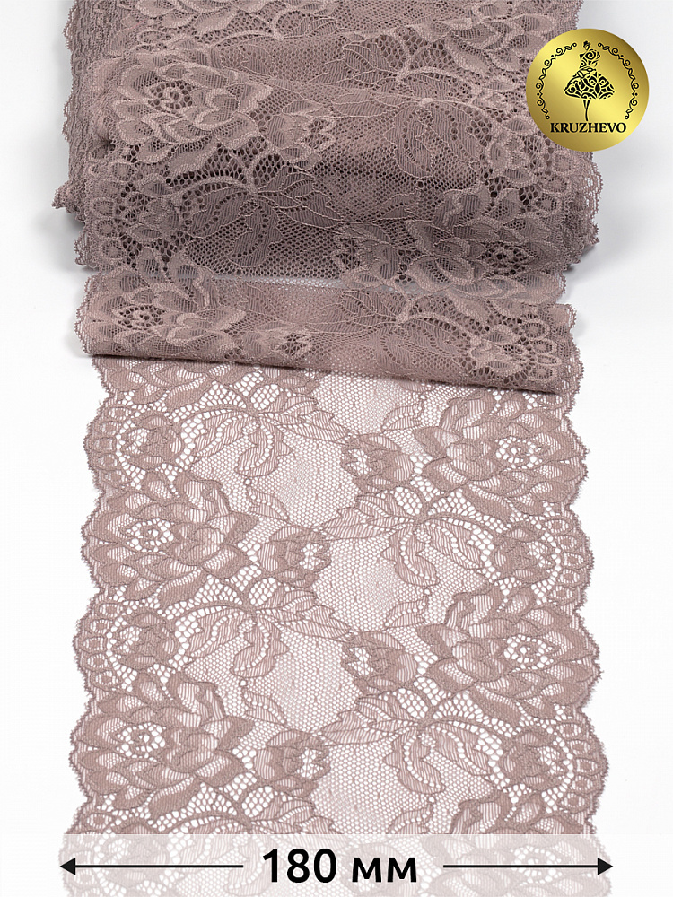 Кружево эластичное (стрейч) L838 180мм цв.10 капучино, 25м, Kruzhevo