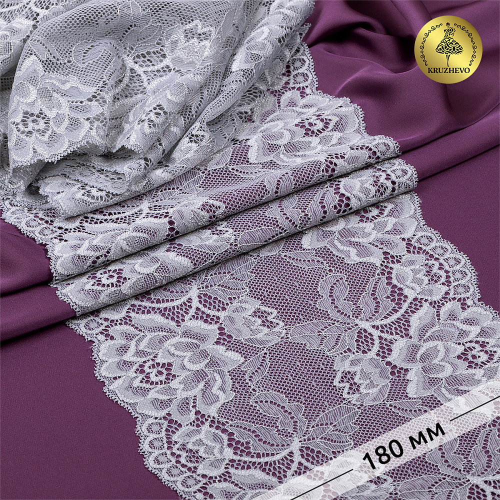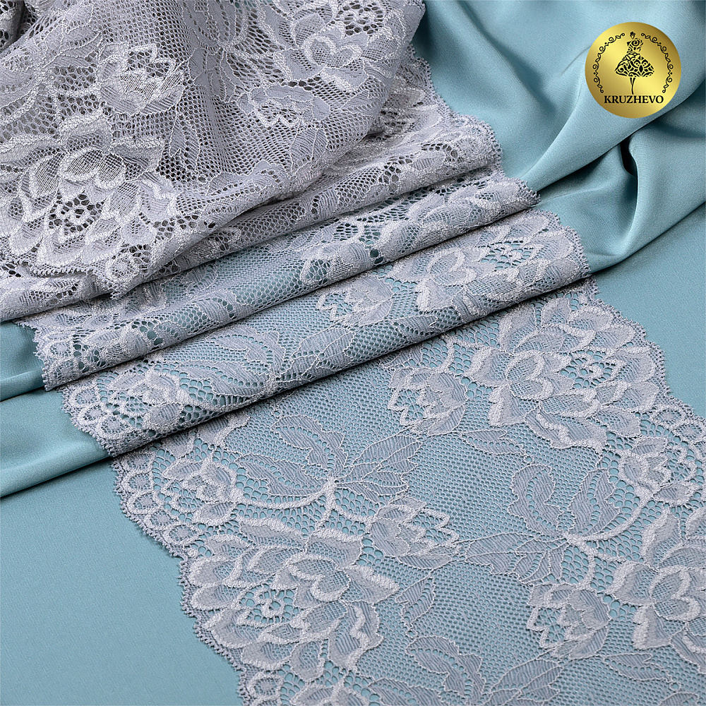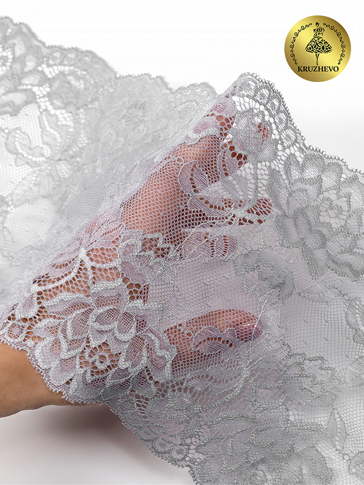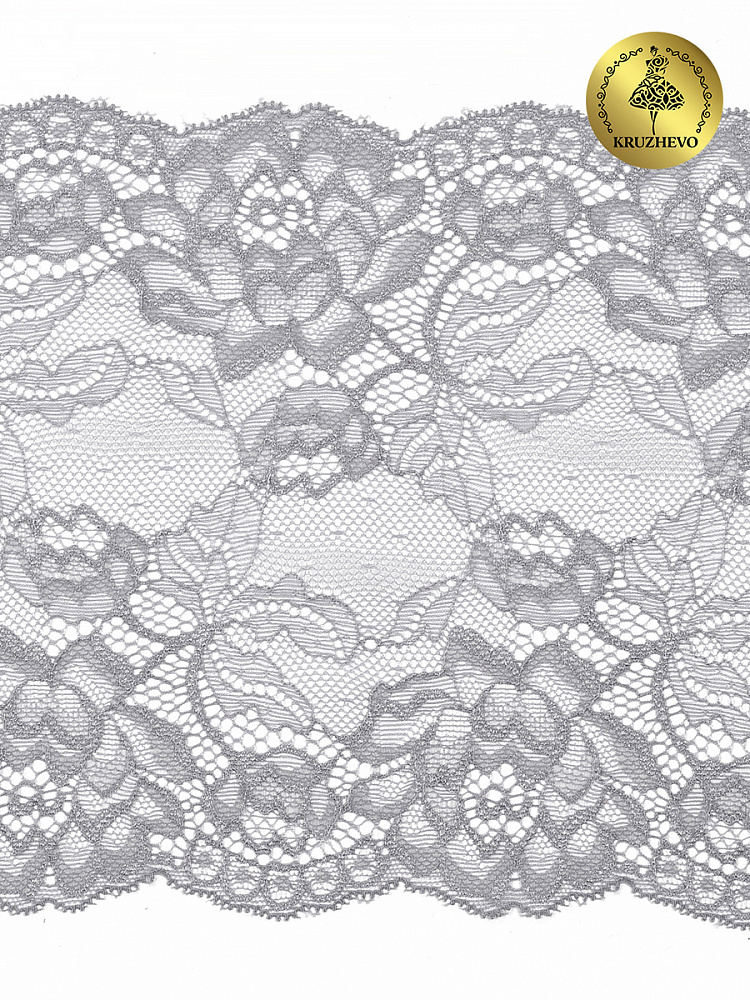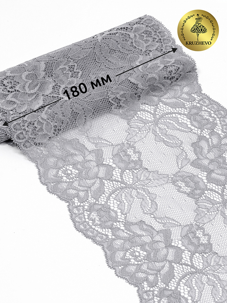Кружево эластичное (стрейч) L838 180мм цв.17 серый, 25м, Kruzhevo