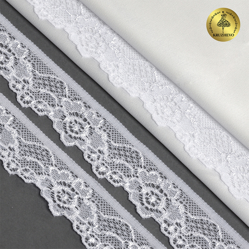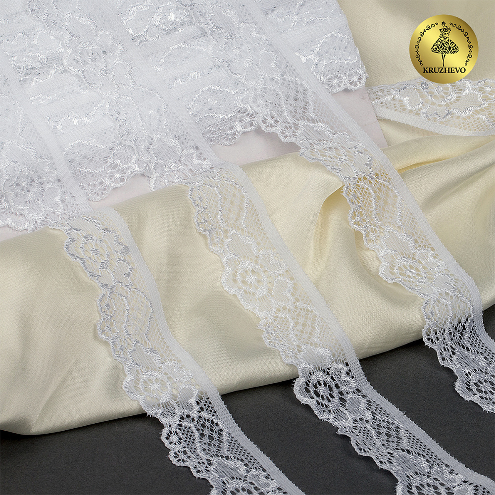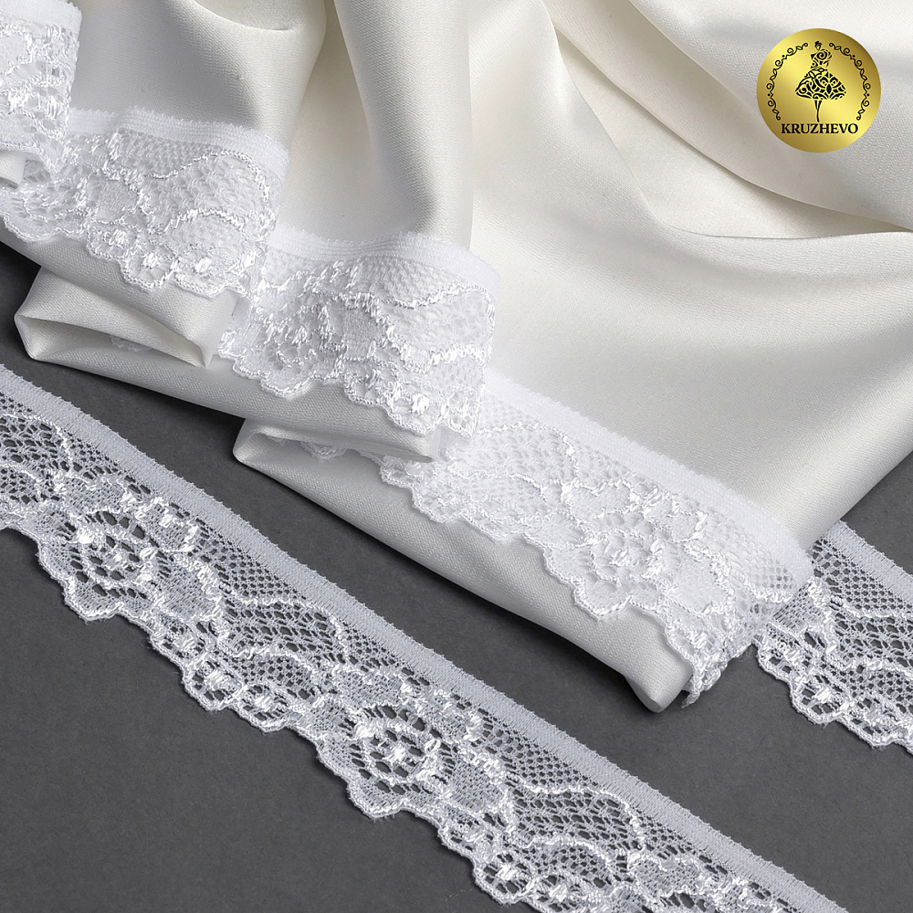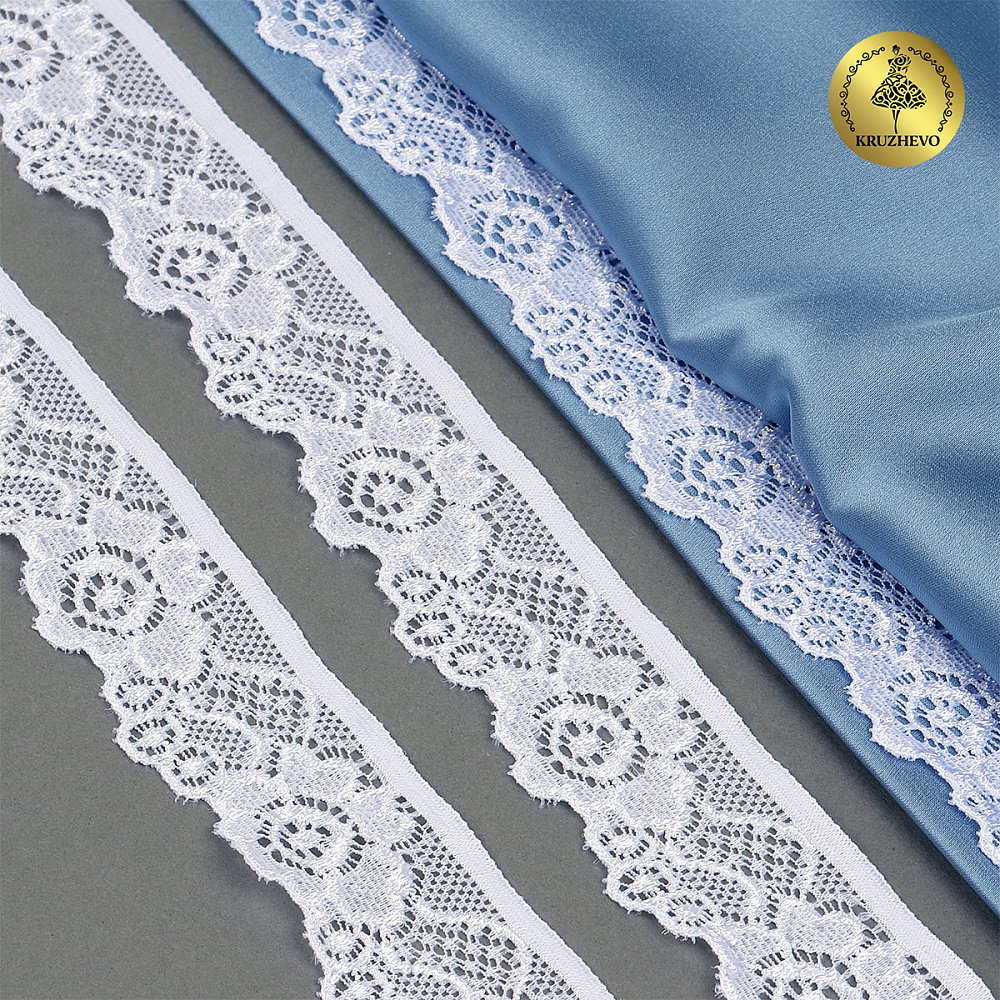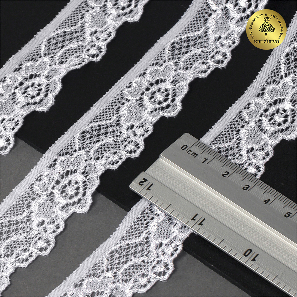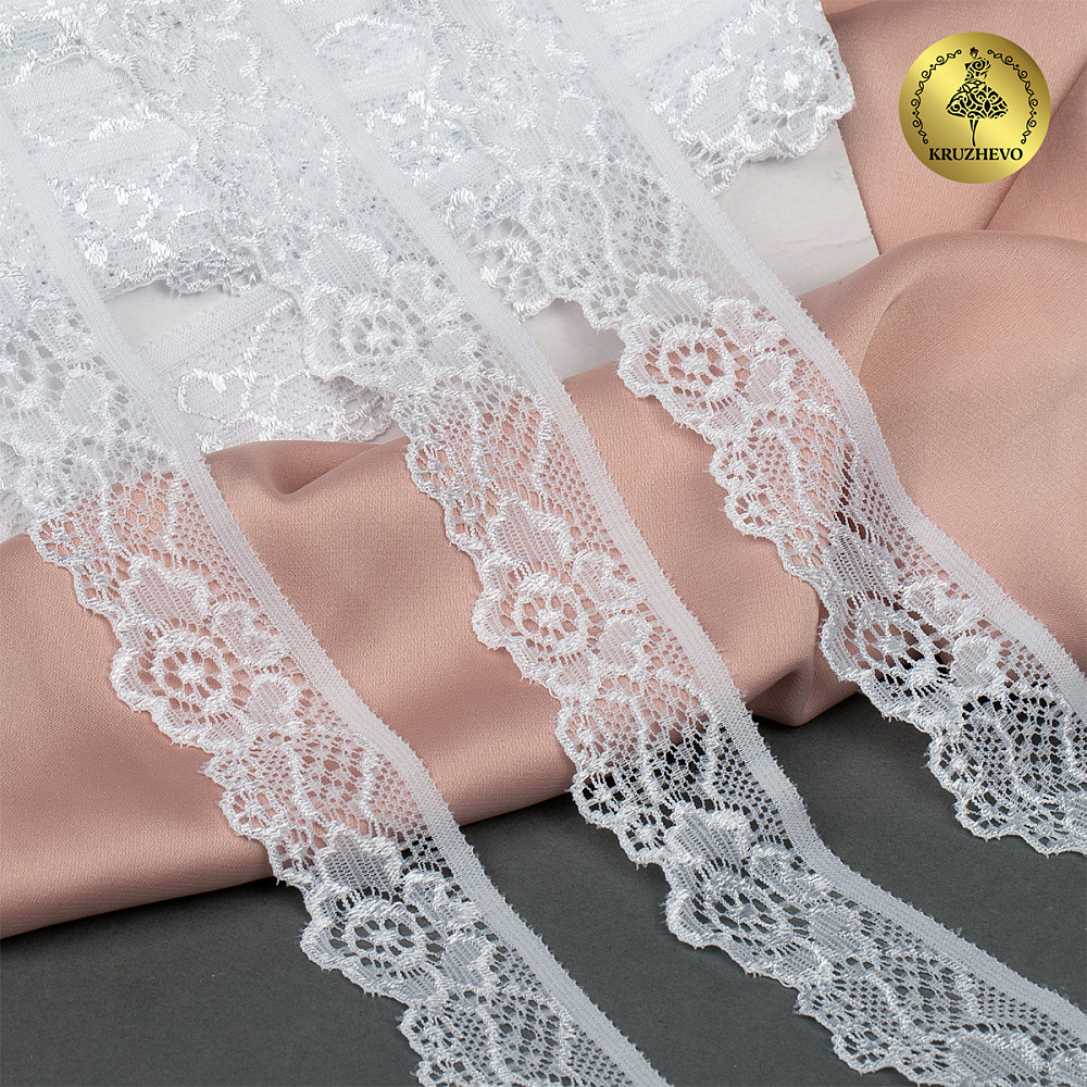 Кружево эластичное (стрейч) 30 мм, L839, цв.01 белый уп.50м, Kruzhevo