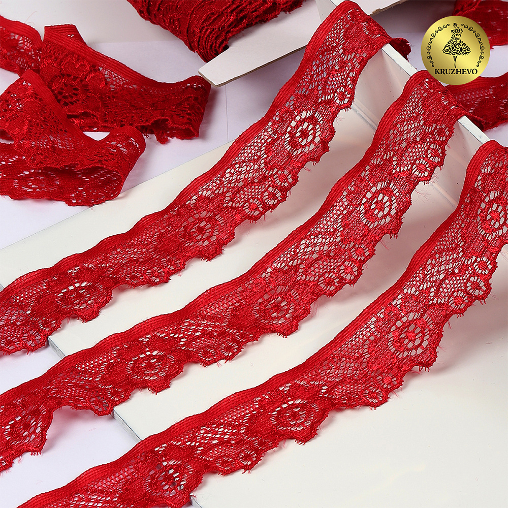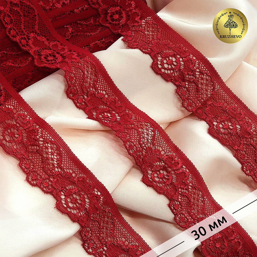 Кружево эластичное (стрейч) 30 мм, L839, цв.101 т.красный уп.50м, Kruzhevo