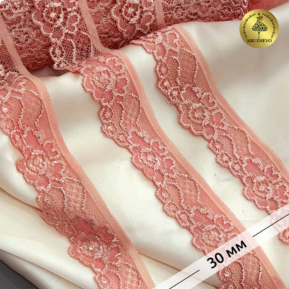 Кружево эластичное (стрейч) 30 мм, L839, цв.154 розовый персик уп.50м, Kruzhevo