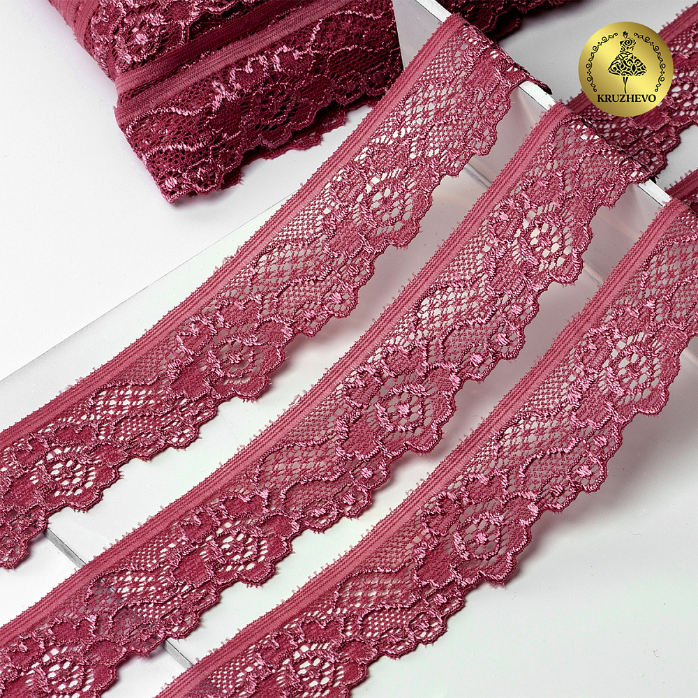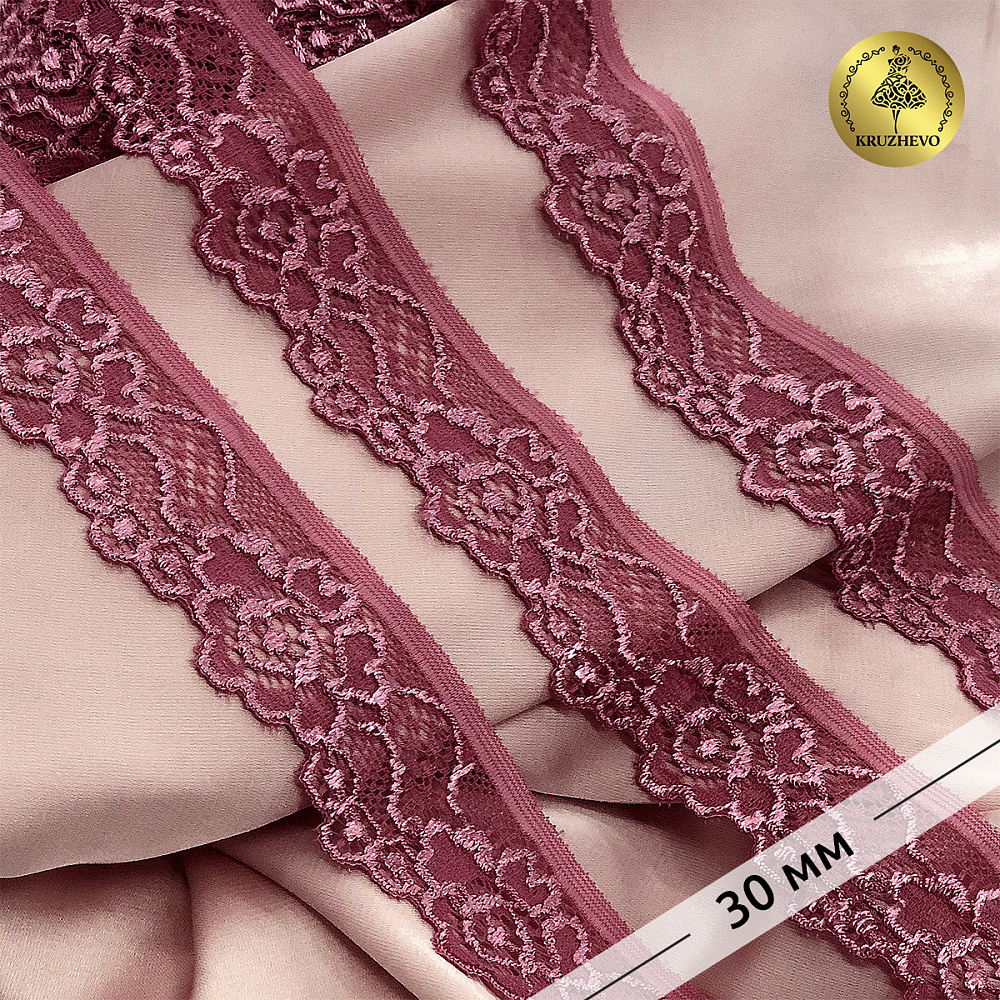 Кружево эластичное (стрейч) 30 мм, L839, цв.2925/S256 розовый рубин уп.50м, Kruzhevo