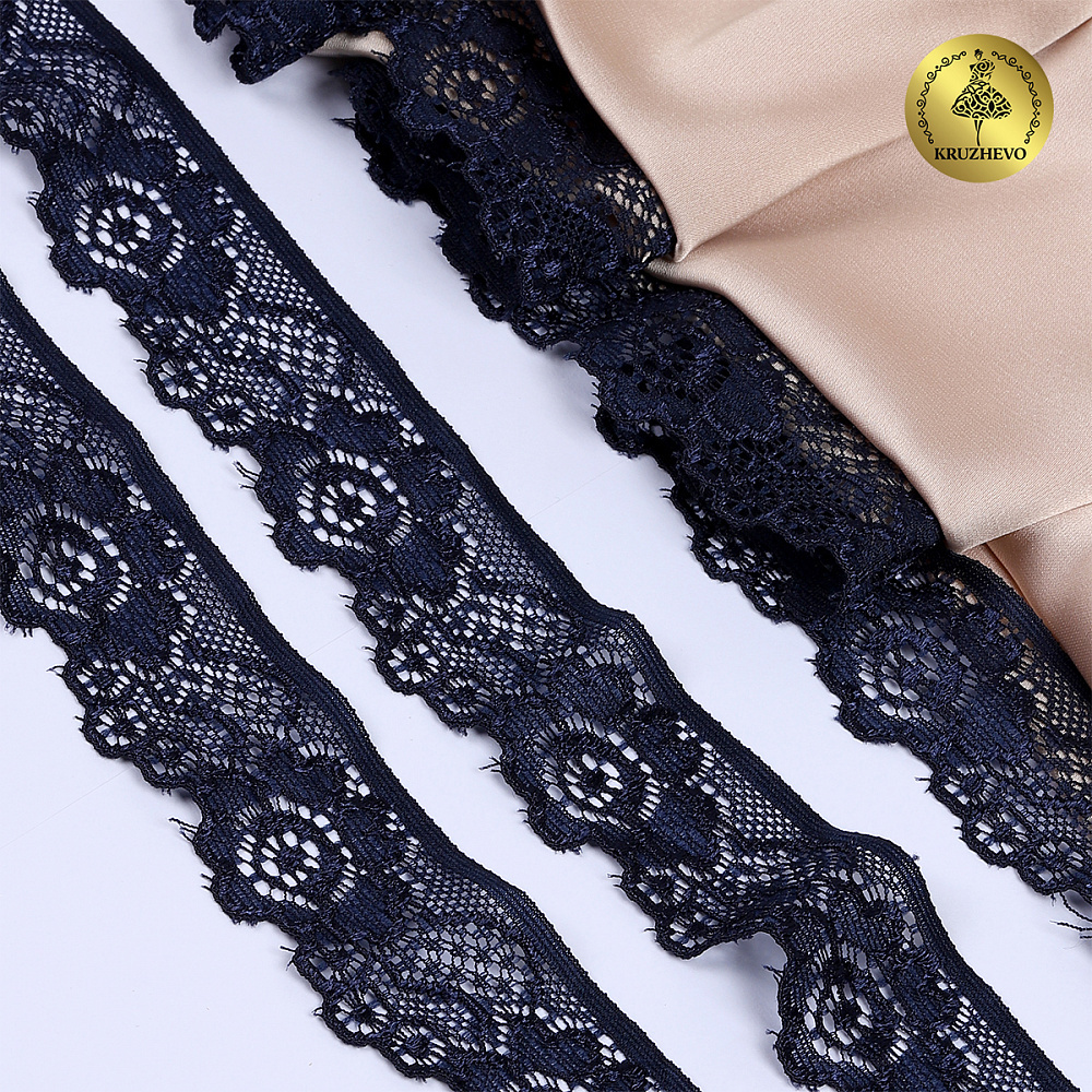 Кружево эластичное (стрейч) 30 мм, L839, цв.S058 синий сапфир уп.50м, Kruzhevo