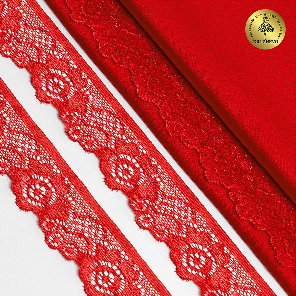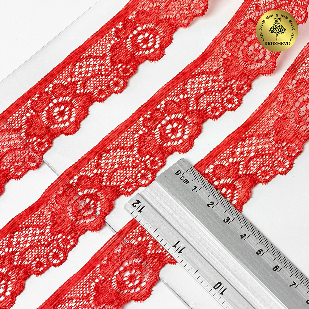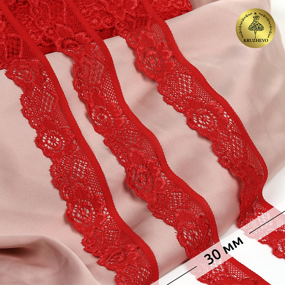 Кружево эластичное (стрейч) 30 мм, L839, цв.SD163 красный уп.50м, Kruzhevo