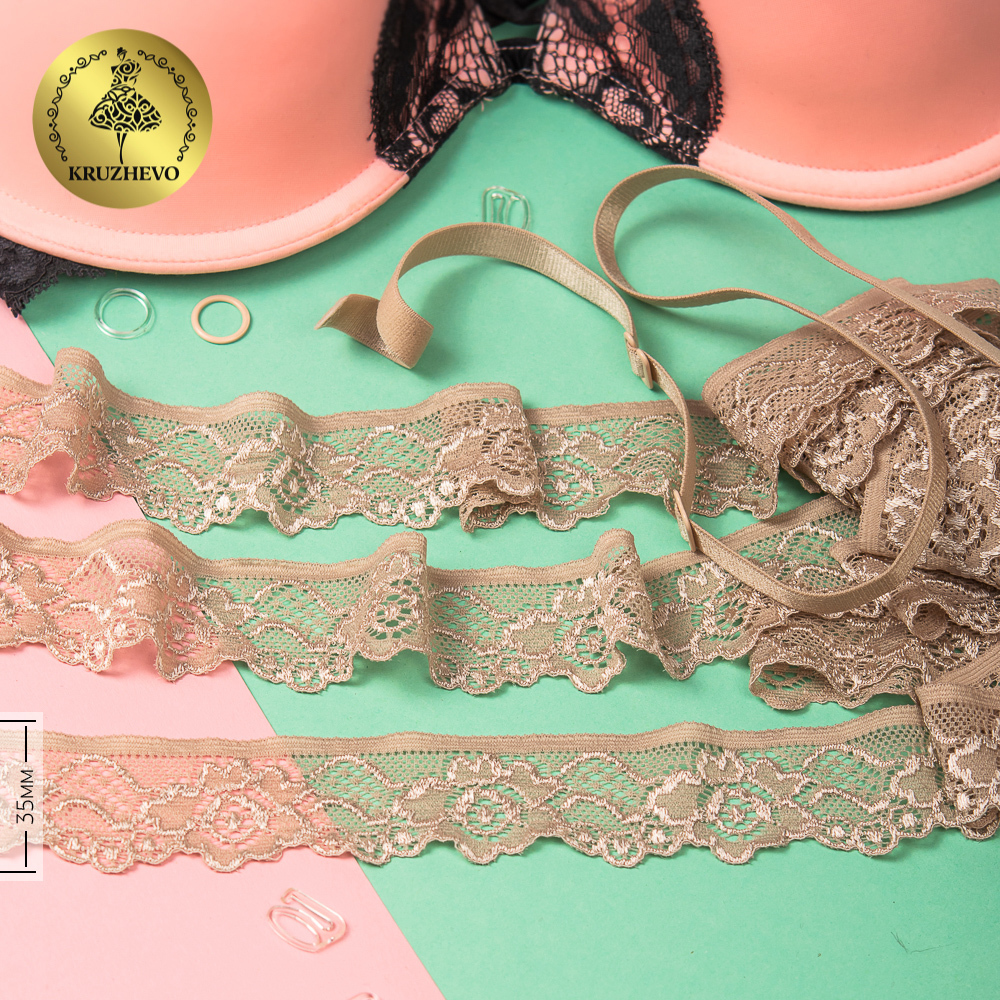 Кружево эластичное (стрейч) 35 мм, L839, цв.14 шоколад уп.50м, Kruzhevo