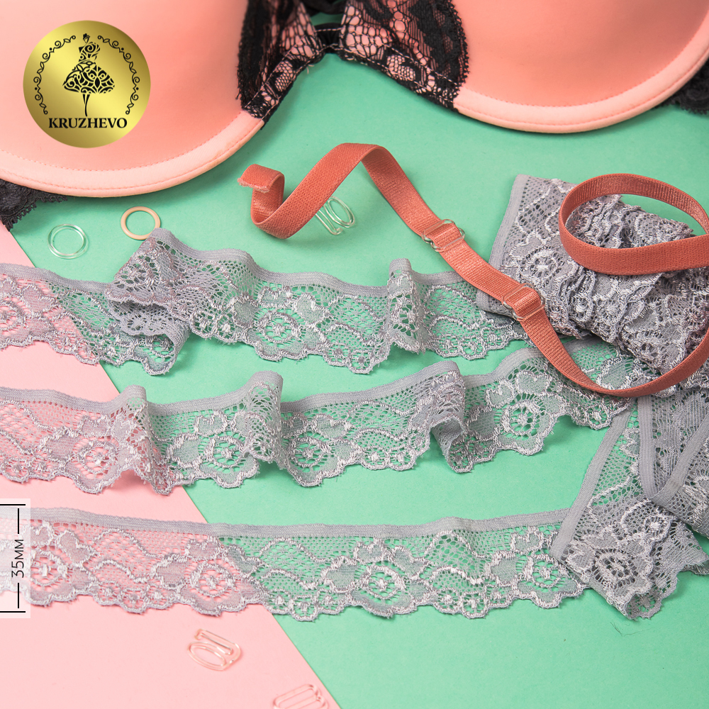 Кружево эластичное (стрейч) 35 мм, L839, цв.19 серый уп.50м, Kruzhevo