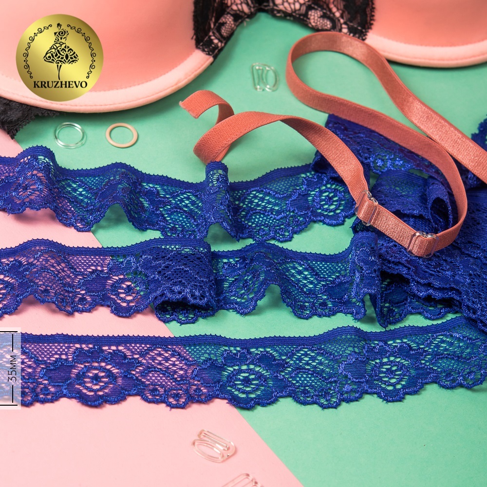 Кружево эластичное (стрейч) 35 мм, L839, цв.20 ярк.синий уп.50м, Kruzhevo