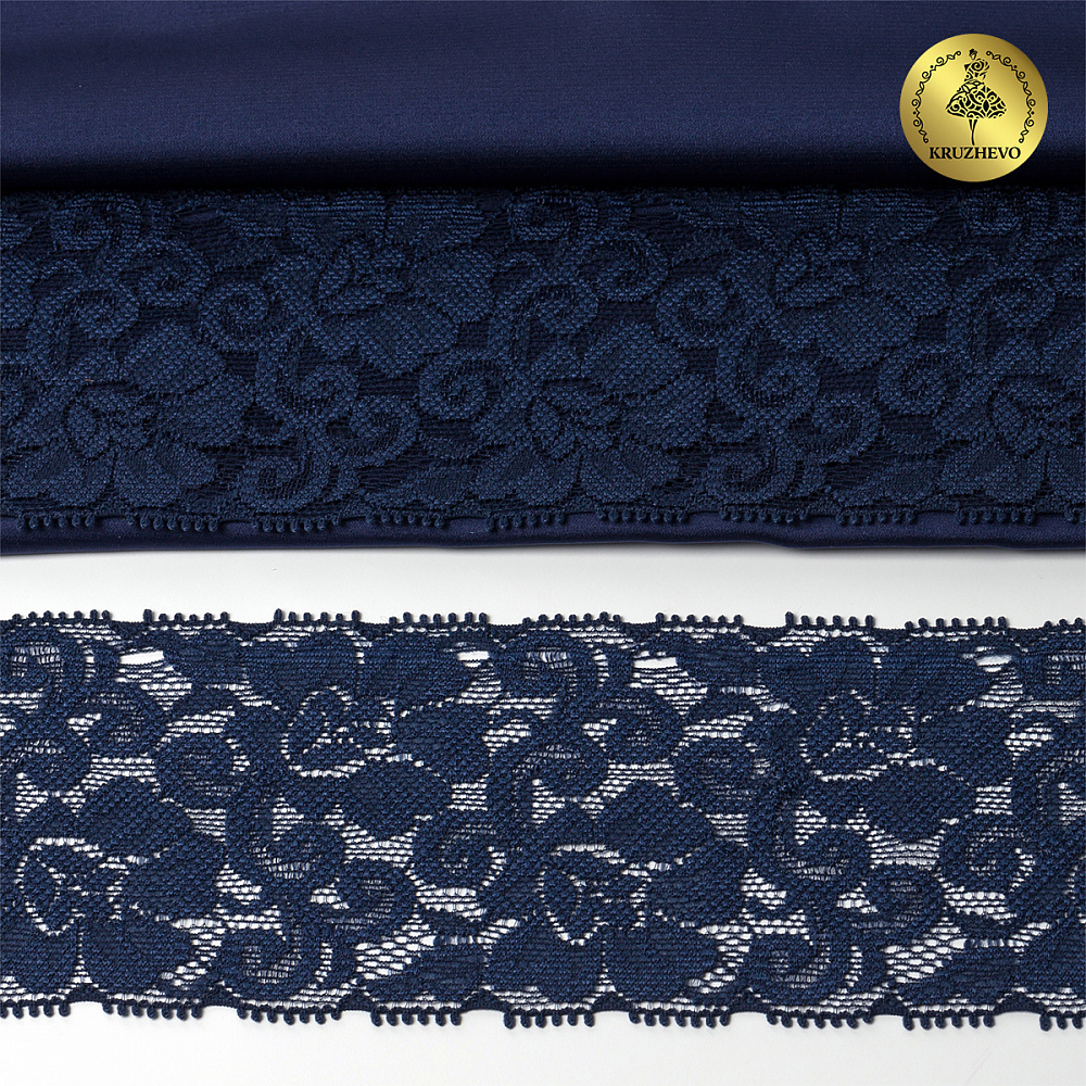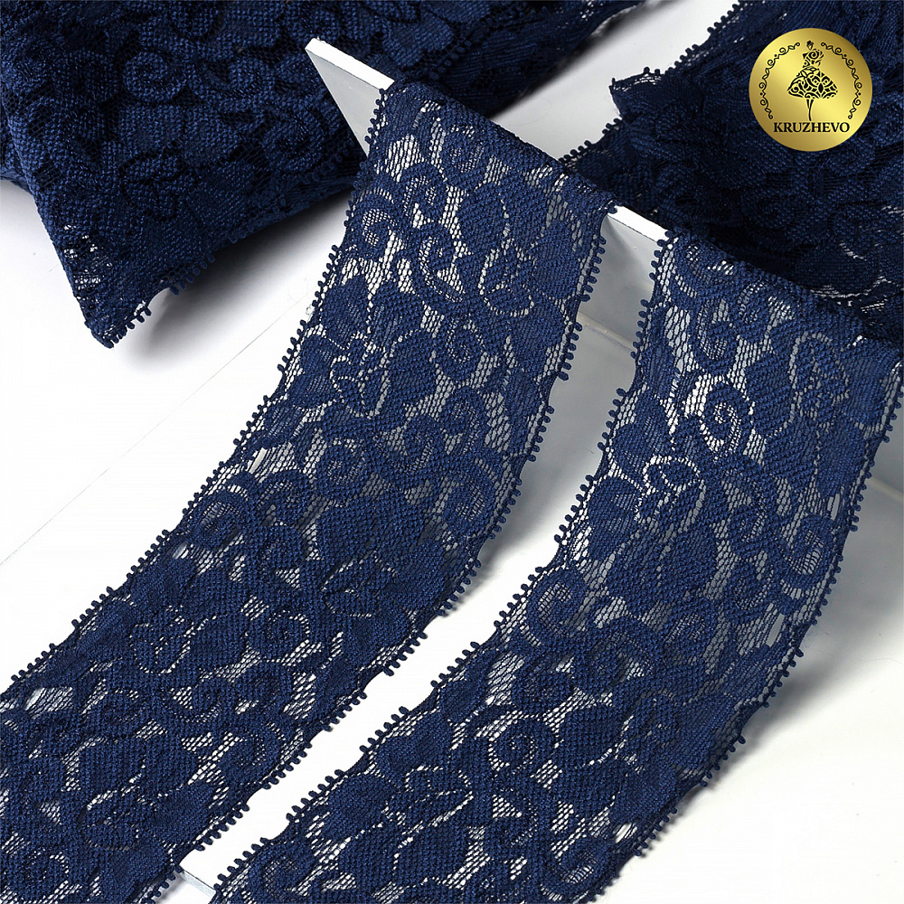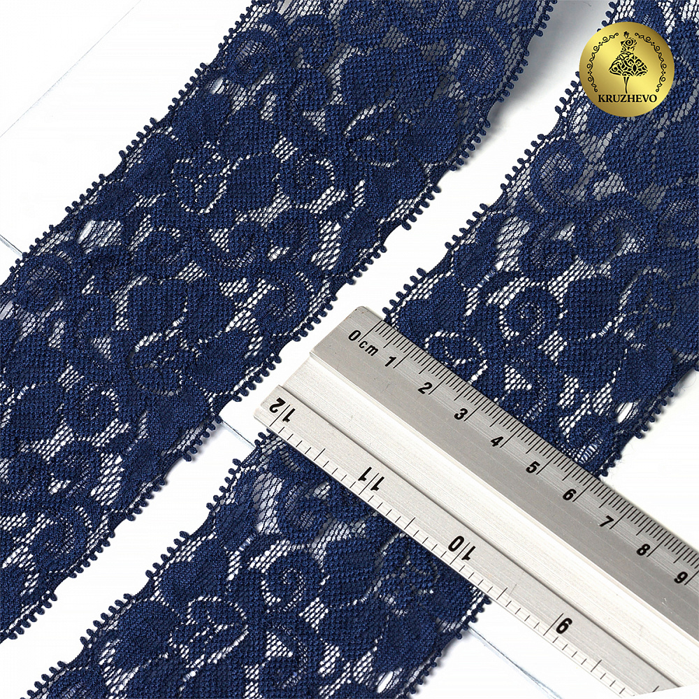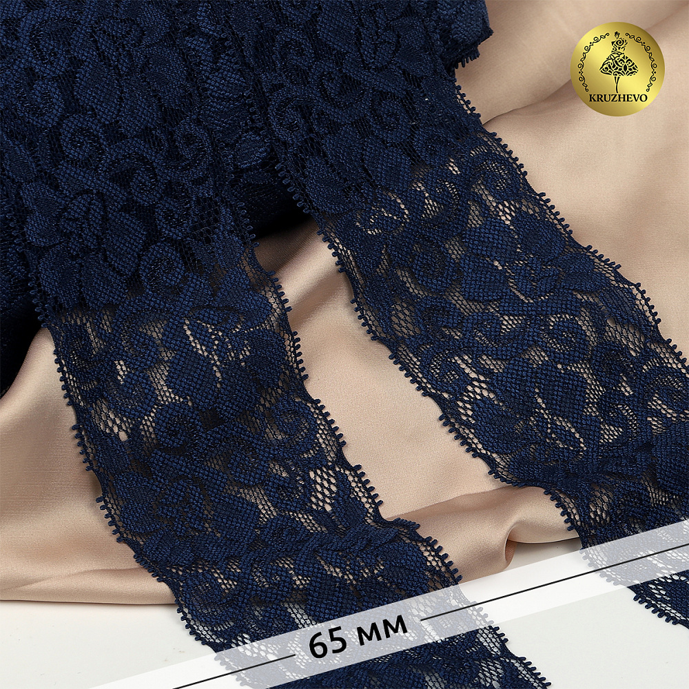 Кружево эластичное (стрейч) 65 мм, L840, цв.S919 синий сапфир уп.25м, Kruzhevo