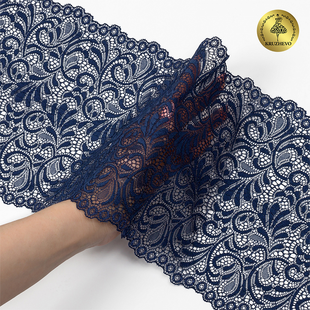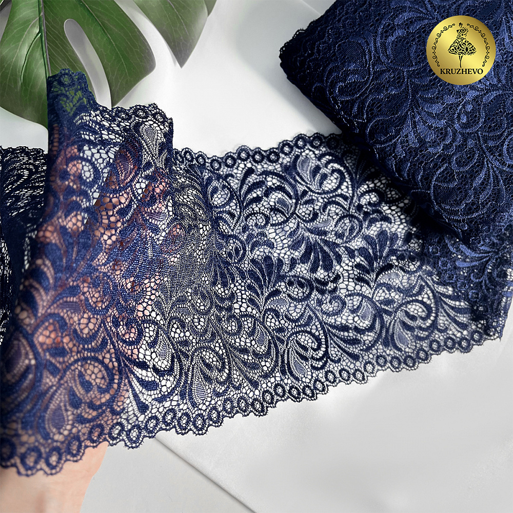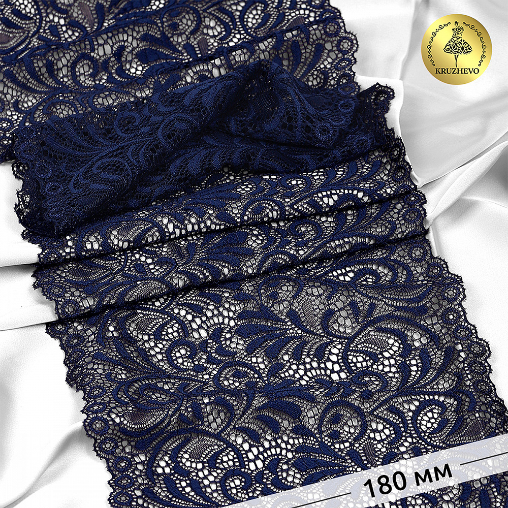 Кружево бельевое эластичное 180 мм / 20 м, 240, цв.S919 т.синий, Kruzhevo