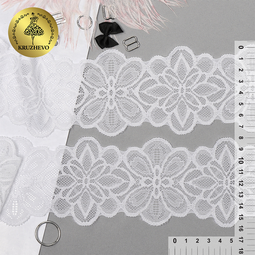 Кружево эластичное (стрейч) 75 мм, 256, цв.01 белый уп. 25 м, Kruzhevo
