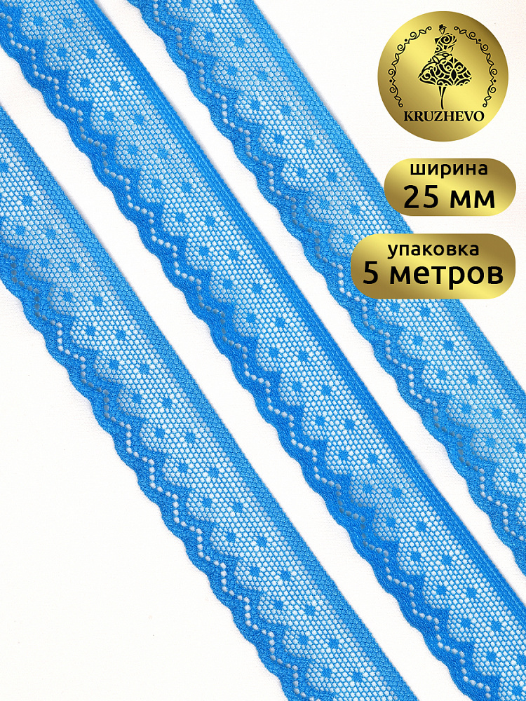 Кружево эластичное (стрейч) 25 мм / 5 метров, TBY.8028, F340 василек