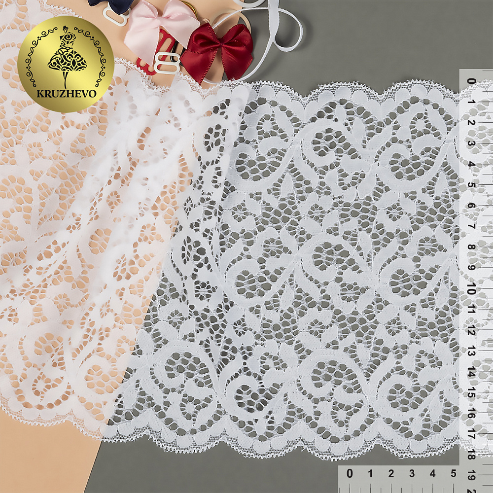 Кружево бельевое эластичное 180 мм / 25 метров, TBY.L1672, 001 белый