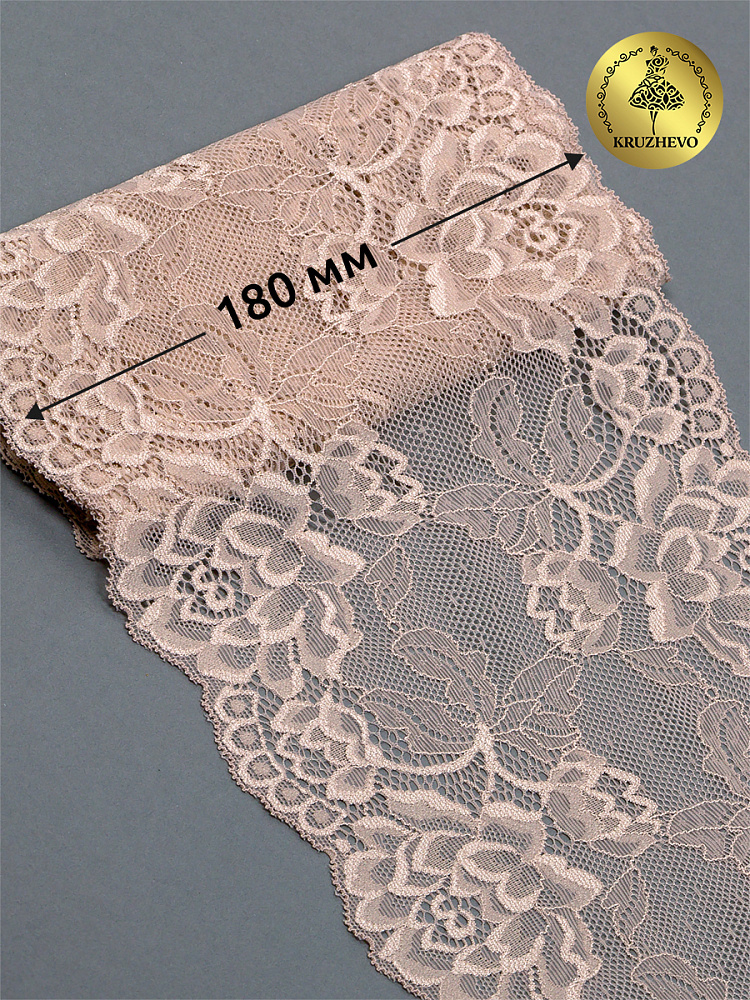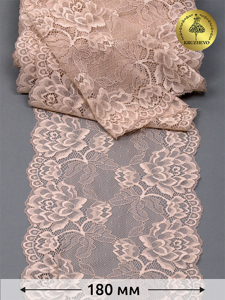 Кружево бельевое эластичное 180 мм / 3 метра, TBY.L838, 168 серебристый пион
