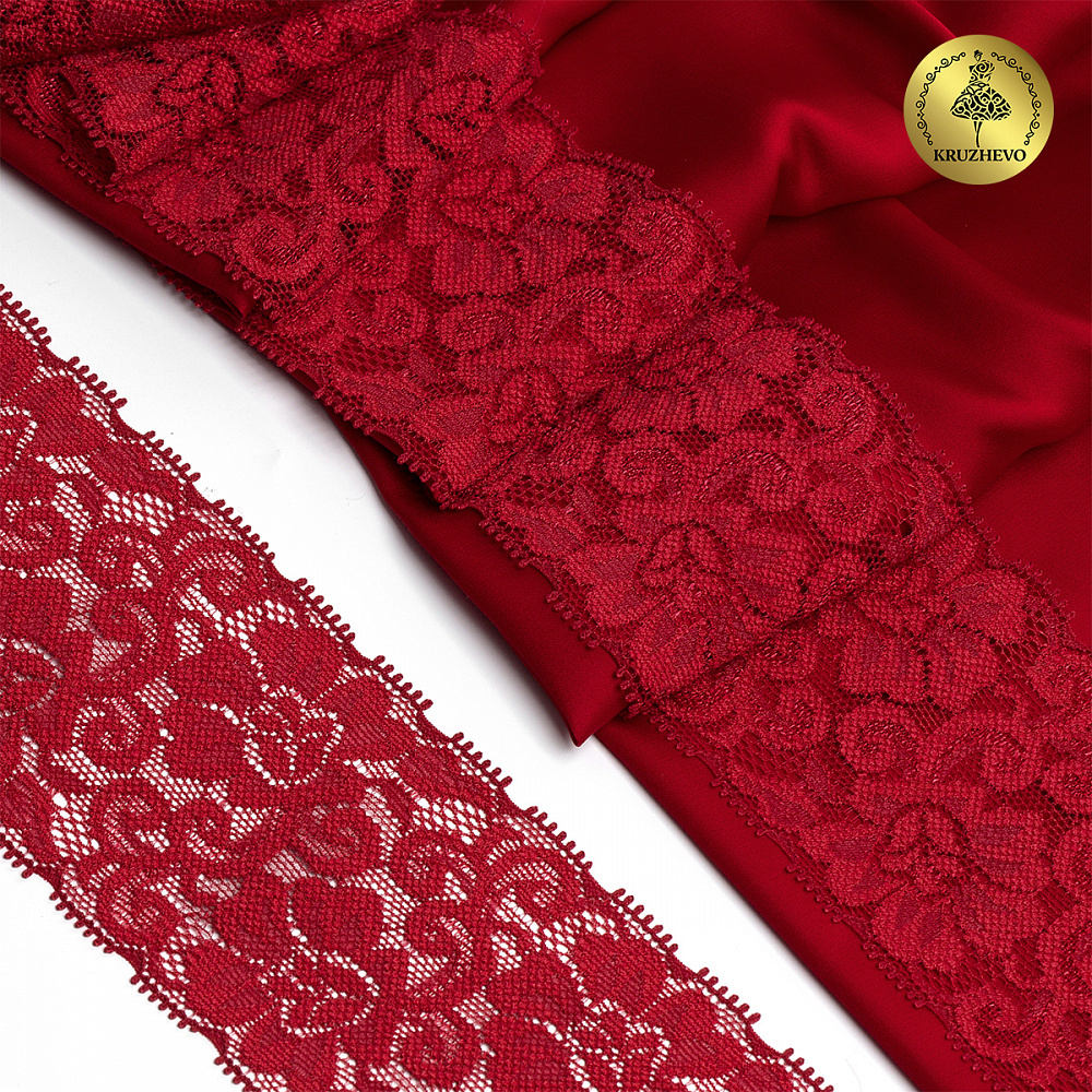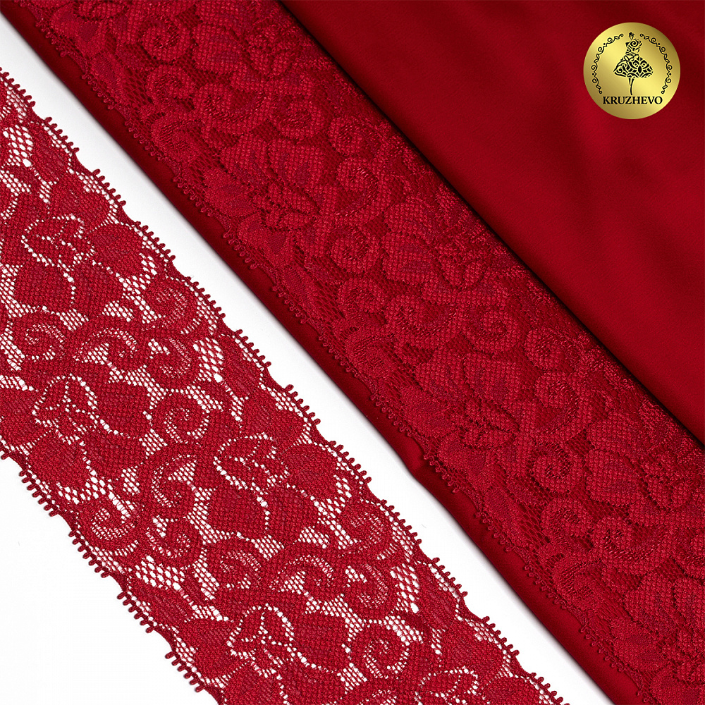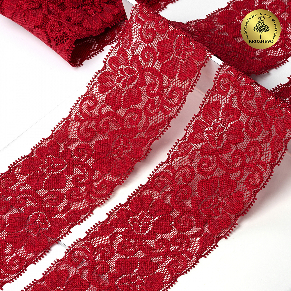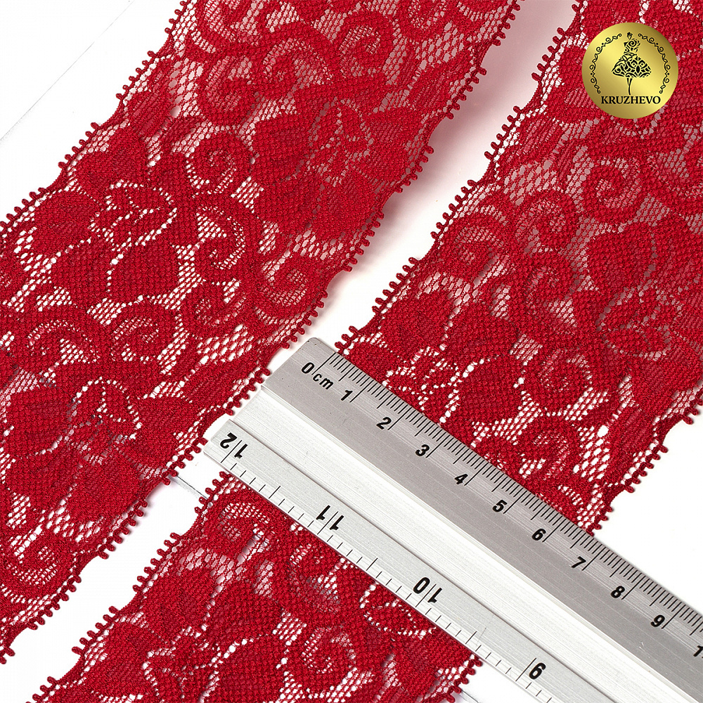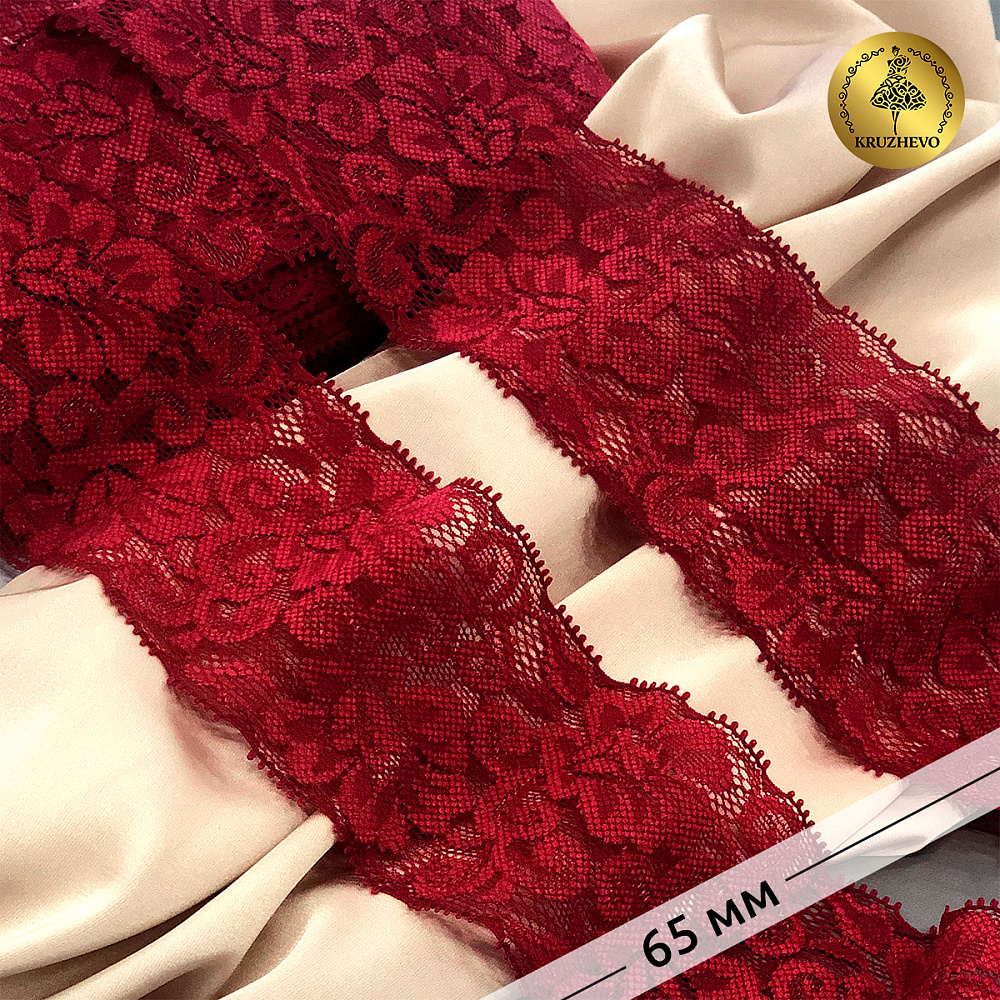 Кружево эластичное (стрейч) 65 мм, 266, цв.101/S059 т.красный уп. 25 м, Kruzhevo