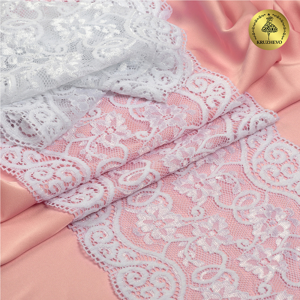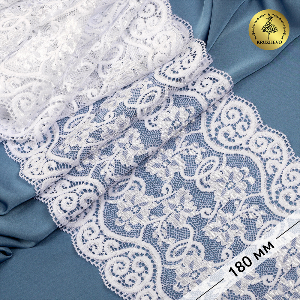 Кружево бельевое эластичное 180 мм / 25 м, 920, цв.01 белый, Kruzhevo