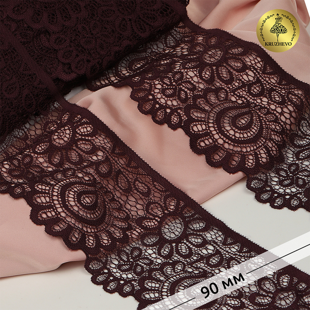 Кружево эластичное (стрейч) 90 мм, YSTL00839/N, цв.076 сливовое вино уп.25м, Kruzhevo