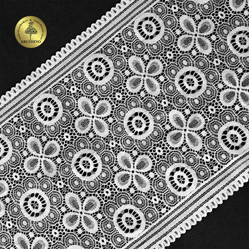 Очень модный и актуальный дизайн кружева в этом сезоне. Можно использовать как краевую сетку. Хорошо тянется, мягкое. Качество премиум-сегмент. Идеально подходит для нижнего белья, одежды, домашнего текстиля и других изделий.