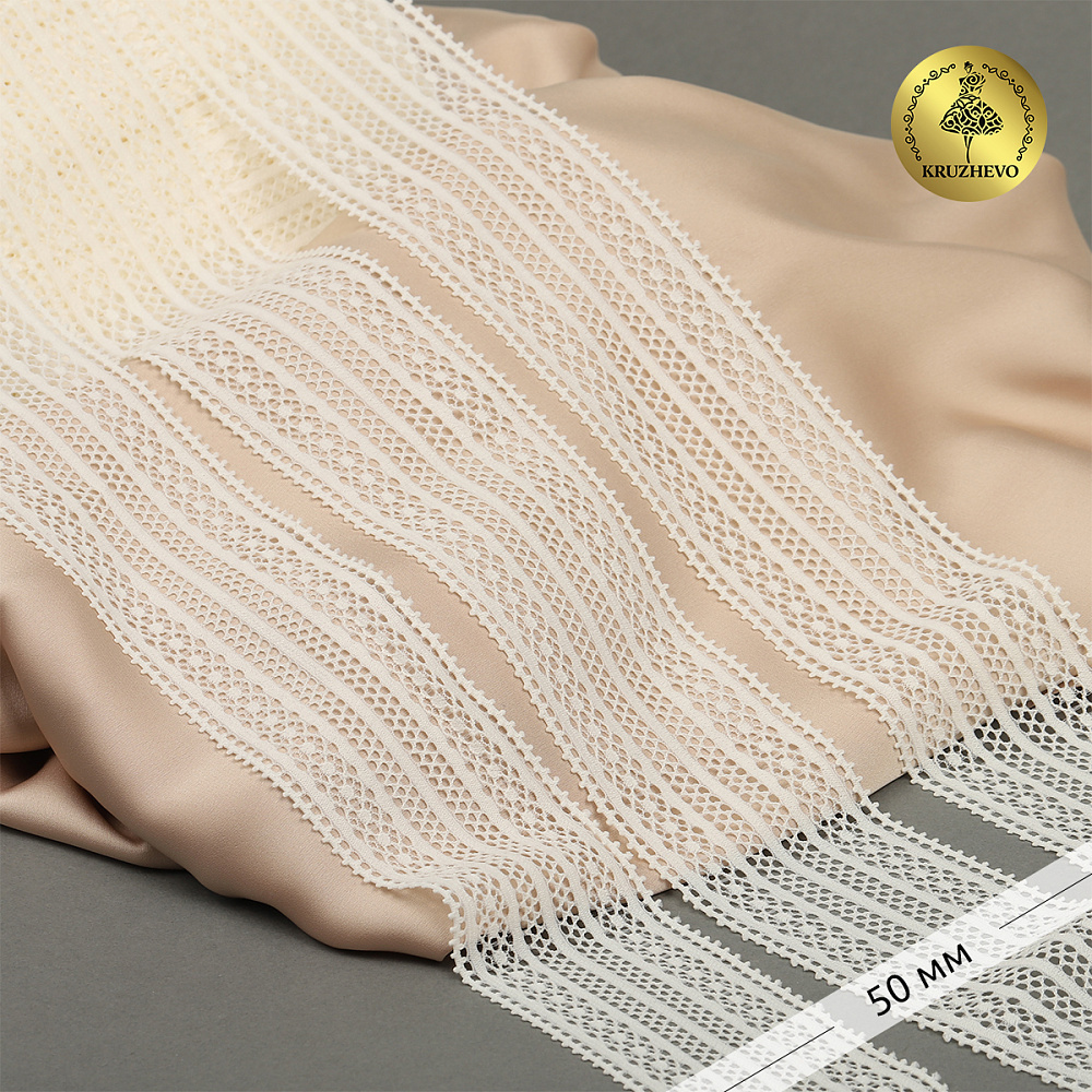 Кружево эластичное (стрейч) 50 мм, диз.8035, 04 сумрачно-белый, 10 метров, Kruzhevo
