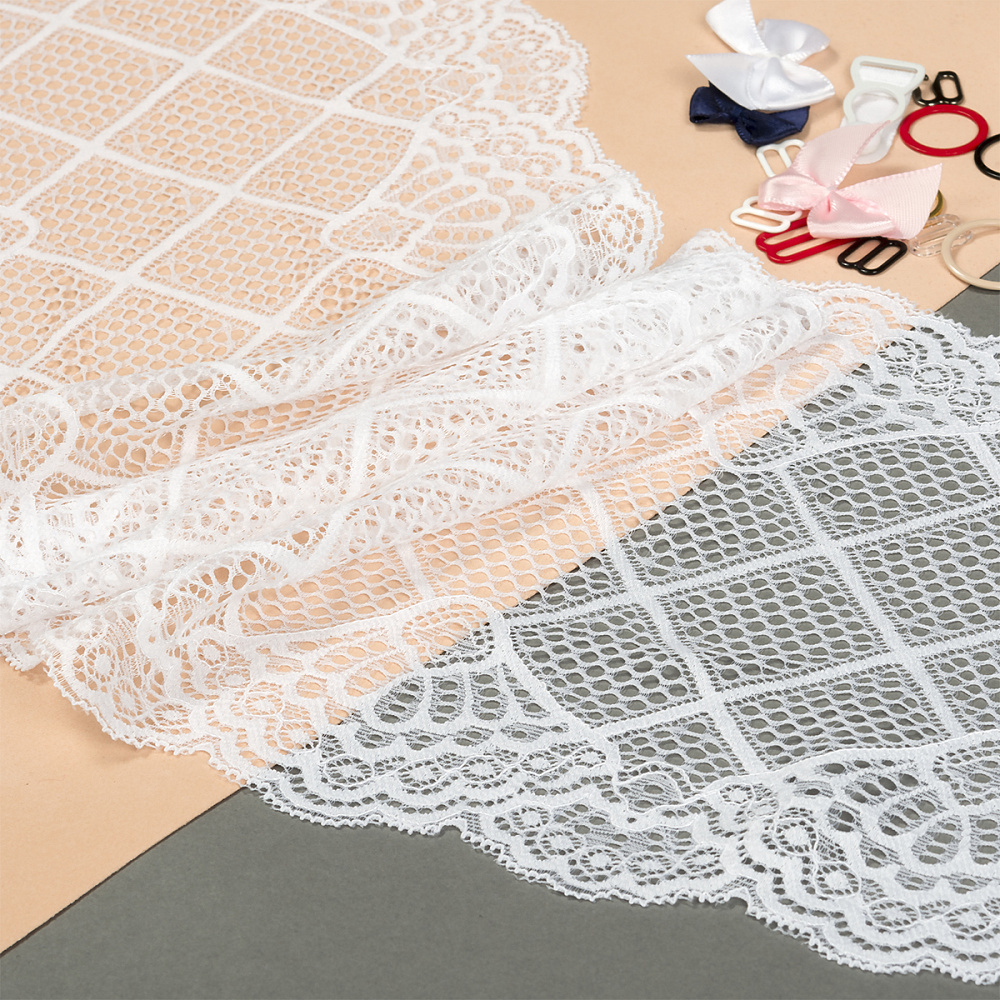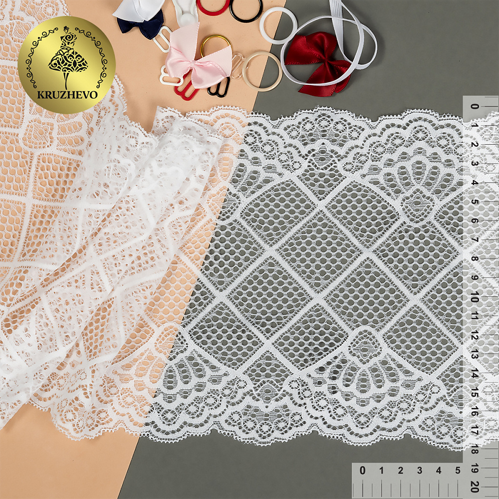 Кружево эластичное (стрейч) 180 мм, 8018, 1 белый, 3м, Kruzhevo