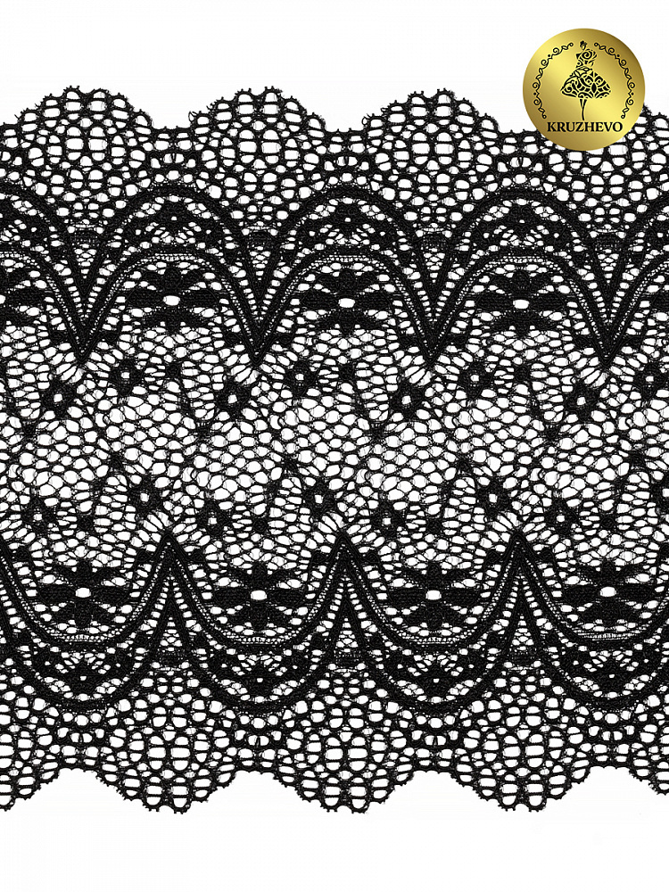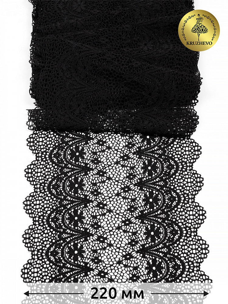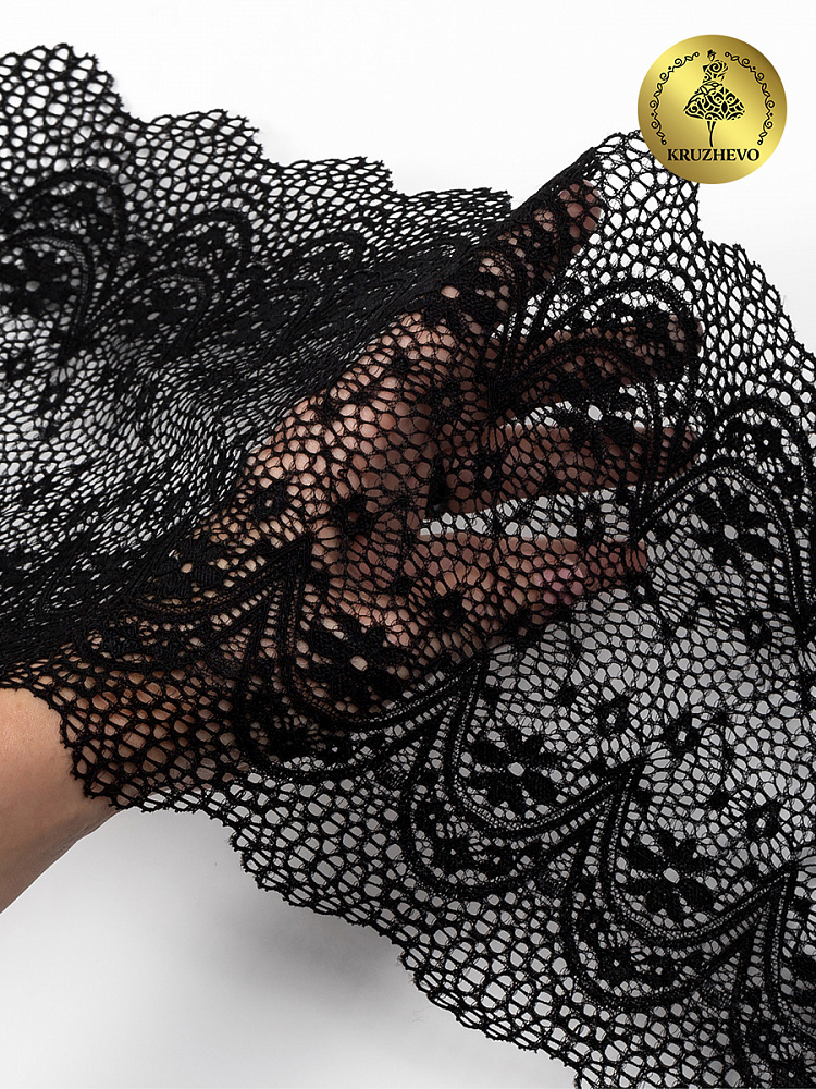 Кружево бельевое эластичное 220 мм / 10 м, 241, цв.02 черный, Kruzhevo