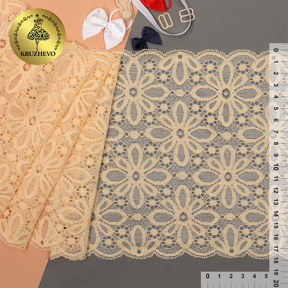 Кружево бельевое эластичное 180 мм / 10 м, 244, цв.126 бежевый, Kruzhevo