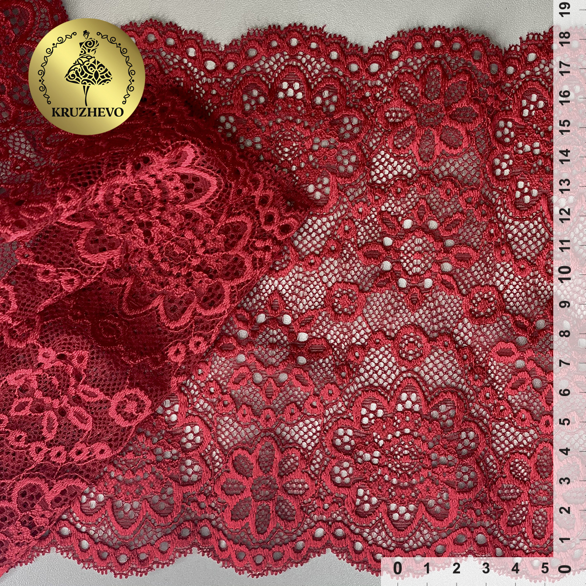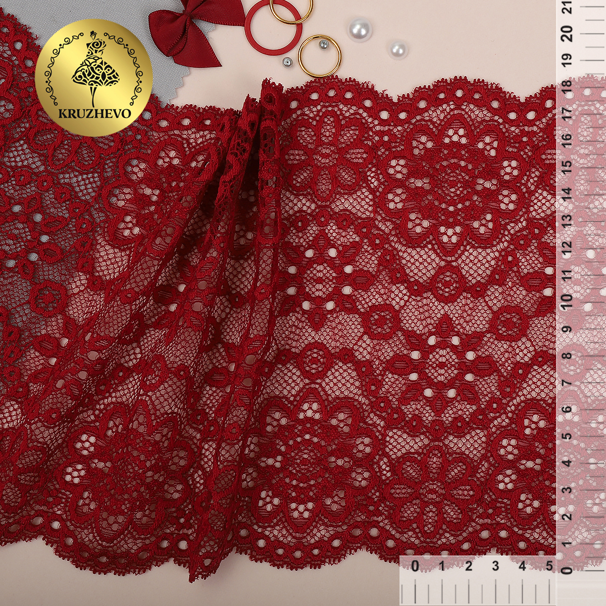 Кружево бельевое эластичное 185 мм / 3 метра, TBY.00755, цв.101 темно-красный, Kruzhevo