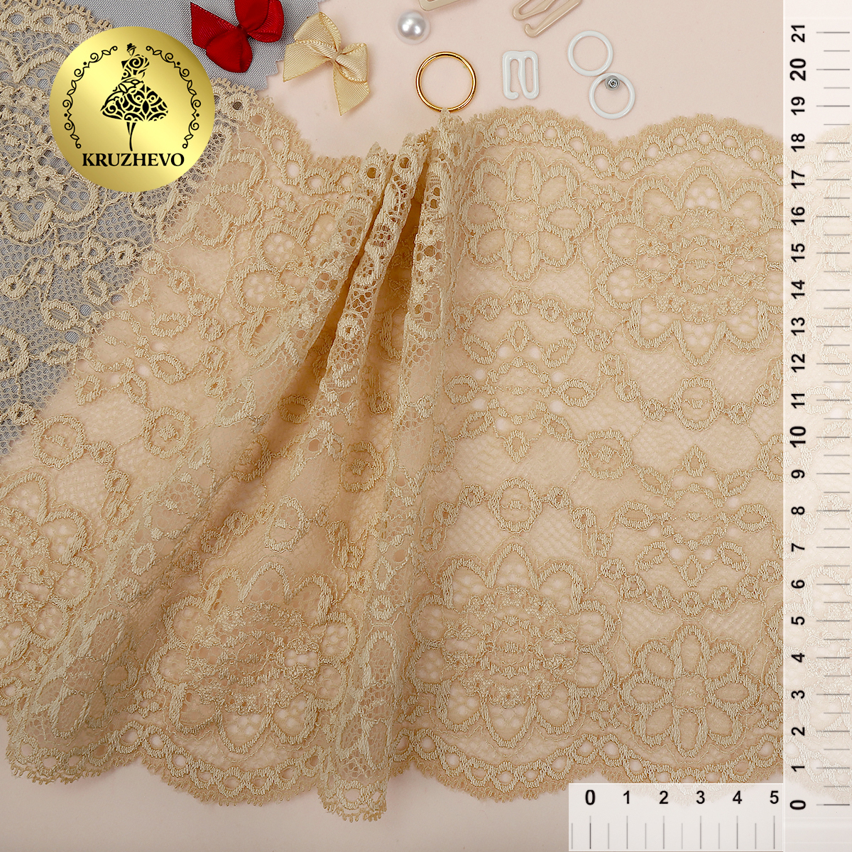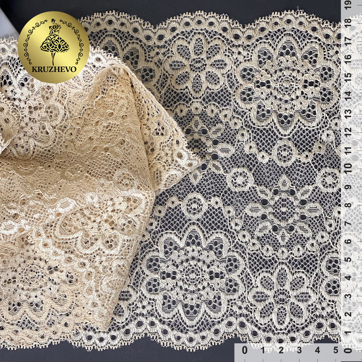 Кружево бельевое эластичное 185 мм / 3 метра, TBY.00755, цв.126 бежевый