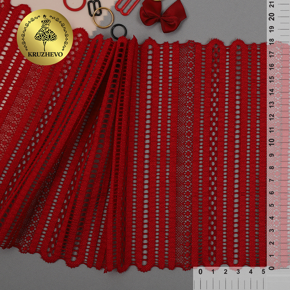 Кружево бельевое эластичное 180 мм / 25 м, 246, цв.100 красный, Kruzhevo