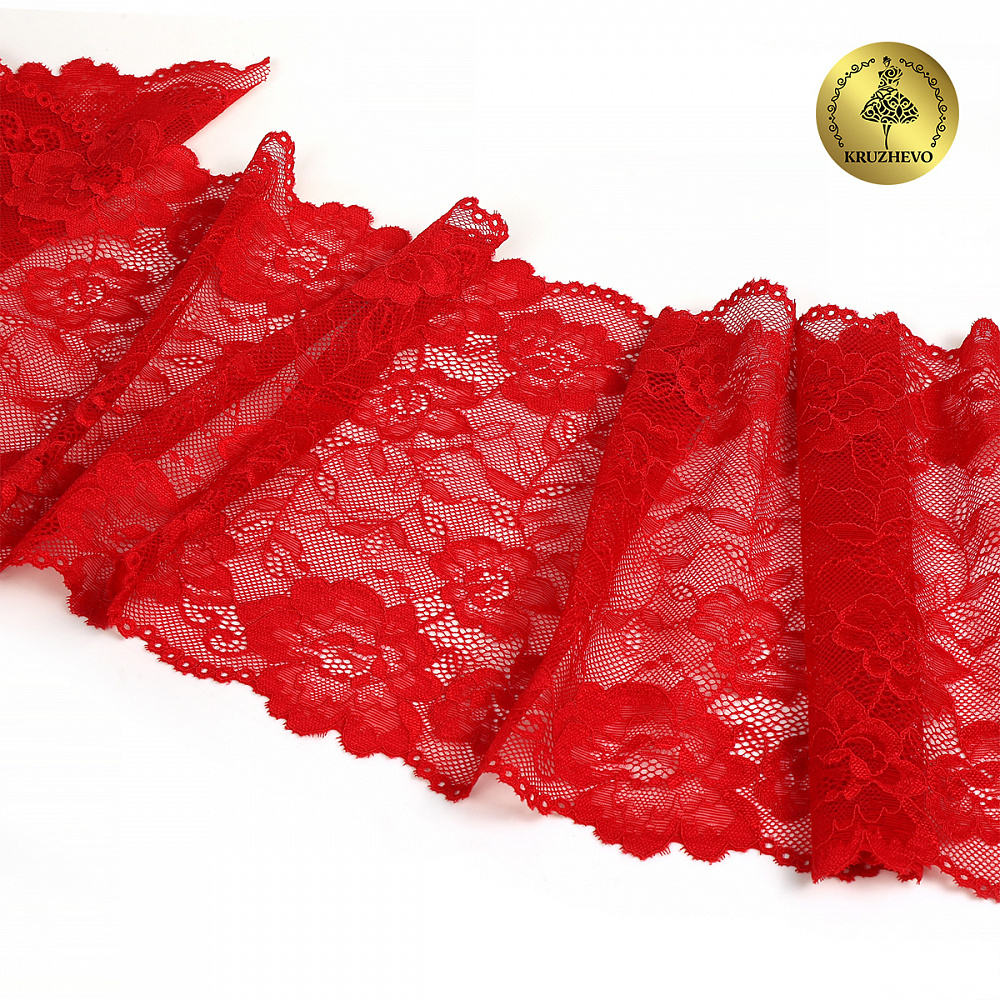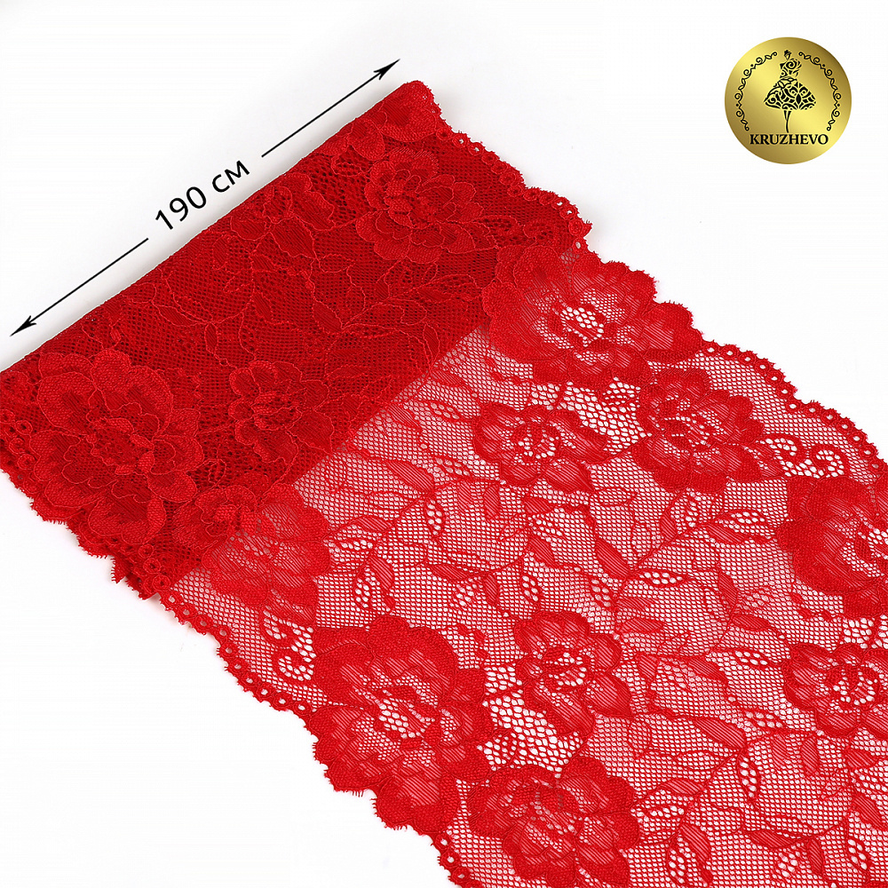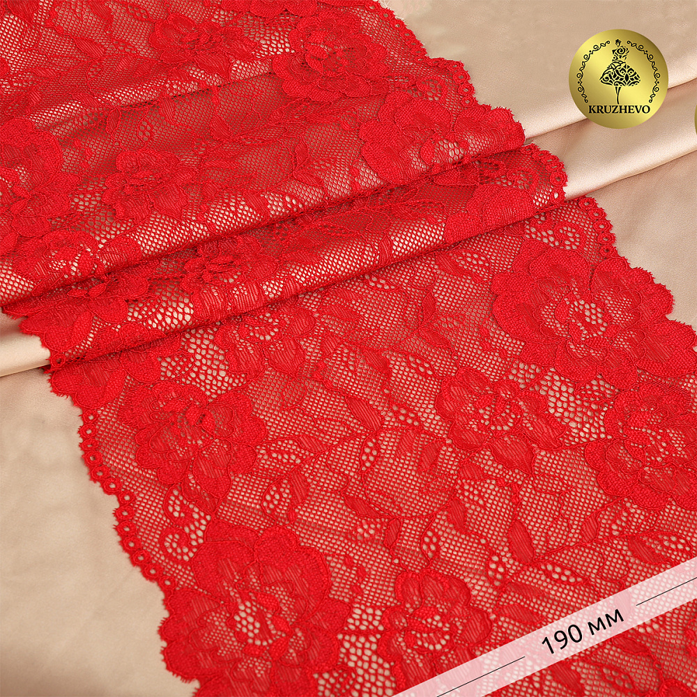 Кружево бельевое эластичное 190 мм / 10 м, 24, цв.красный, Kruzhevo