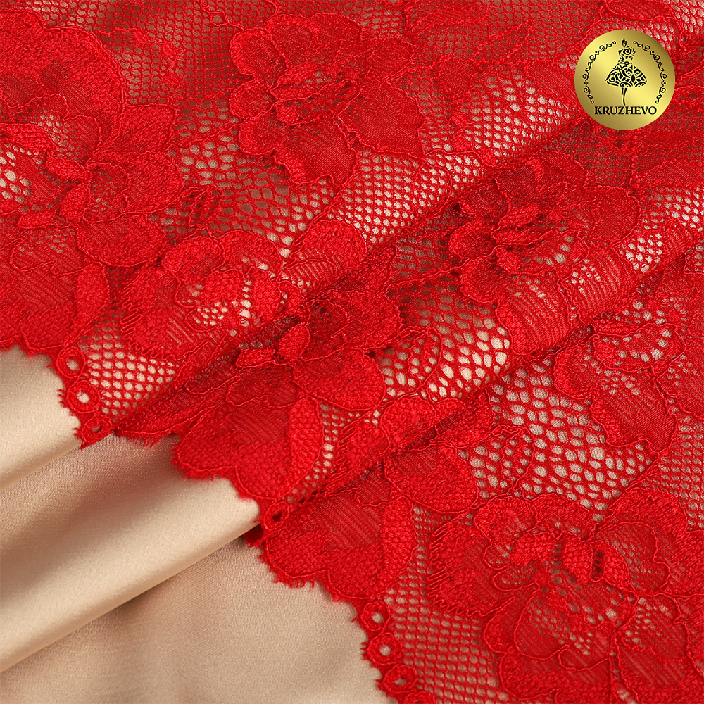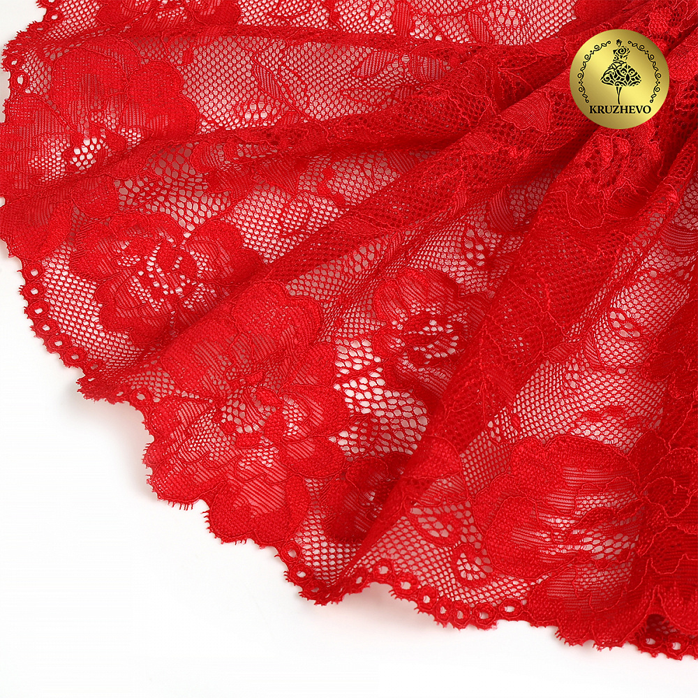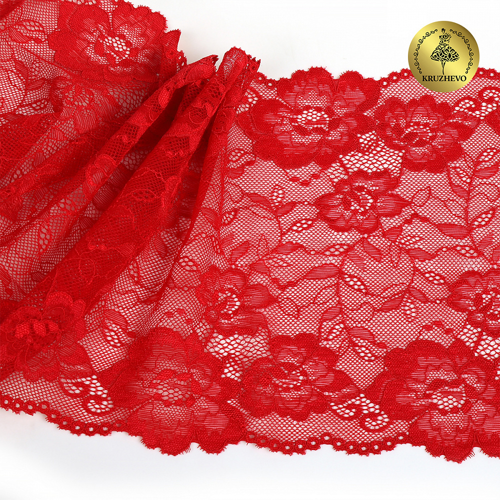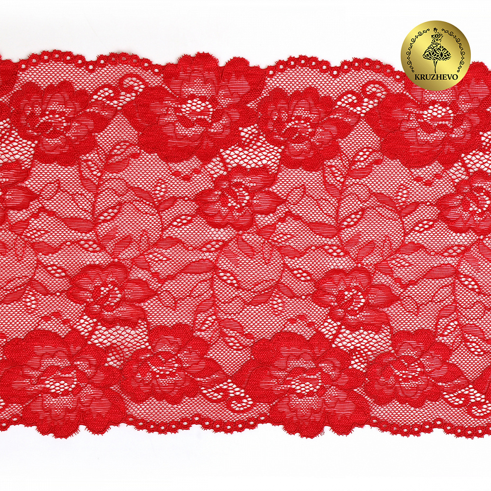 Кружево бельевое эластичное 190 мм / 10 м, 24, цв.красный, Kruzhevo