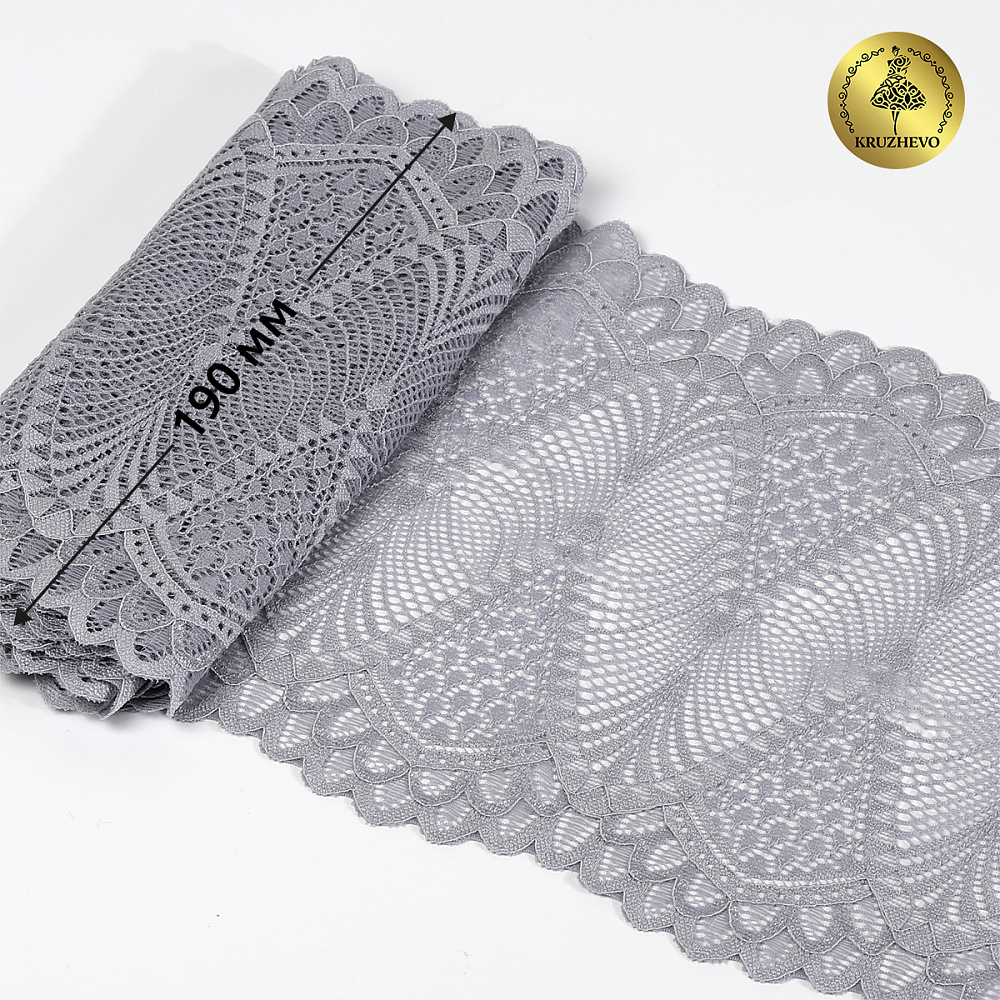 Кружево бельевое эластичное 190 мм / 3 метра, TBY.30200, цв.17 серый, Kruzhevo