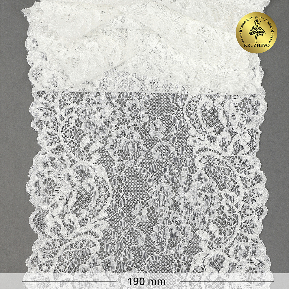 Кружево бельевое эластичное 190 мм / 10 м, 6378, цв.004 белый, Kruzhevo