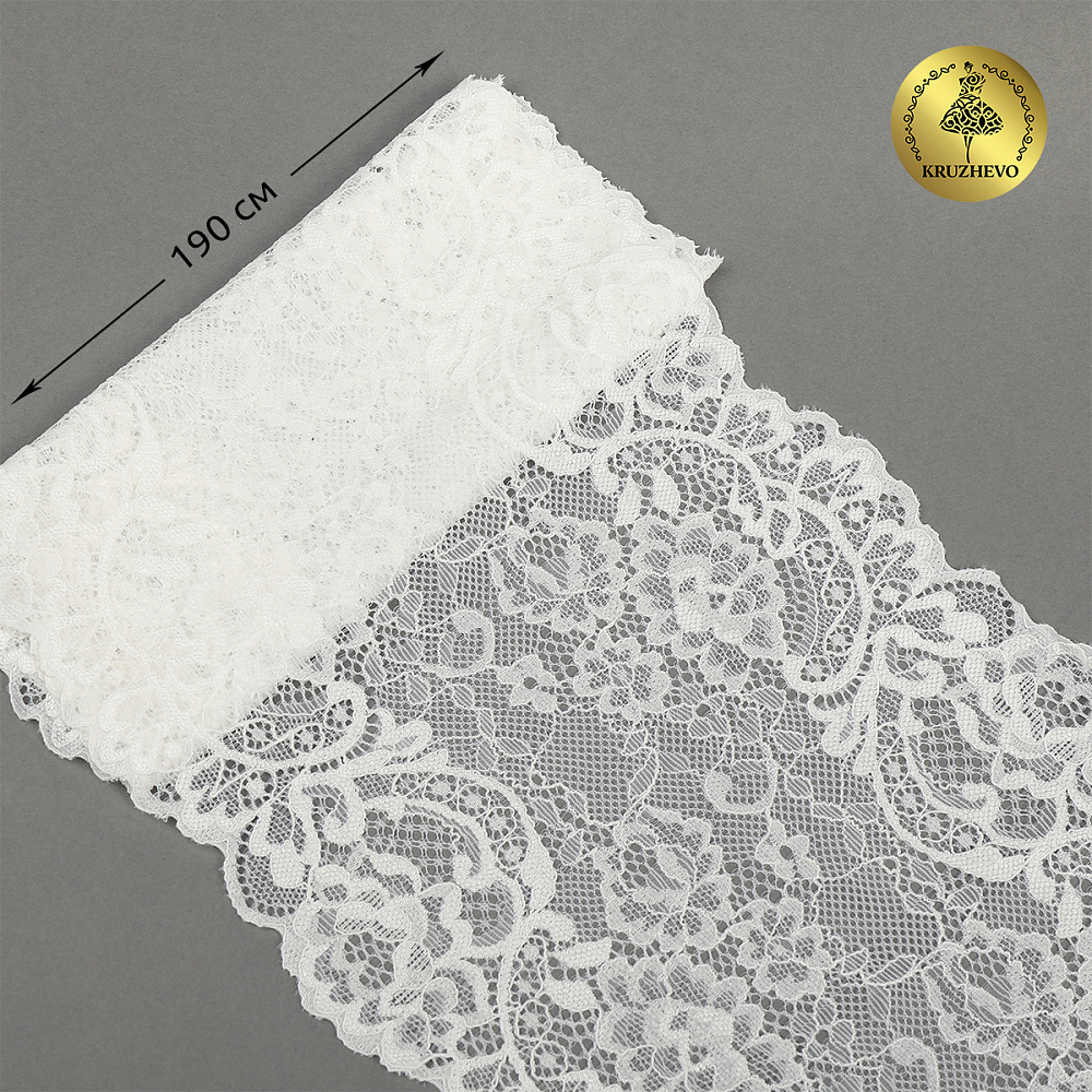 Кружево бельевое эластичное 190 мм / 3 м, 6378, цв.004 белый, Kruzhevo