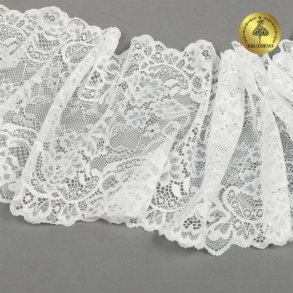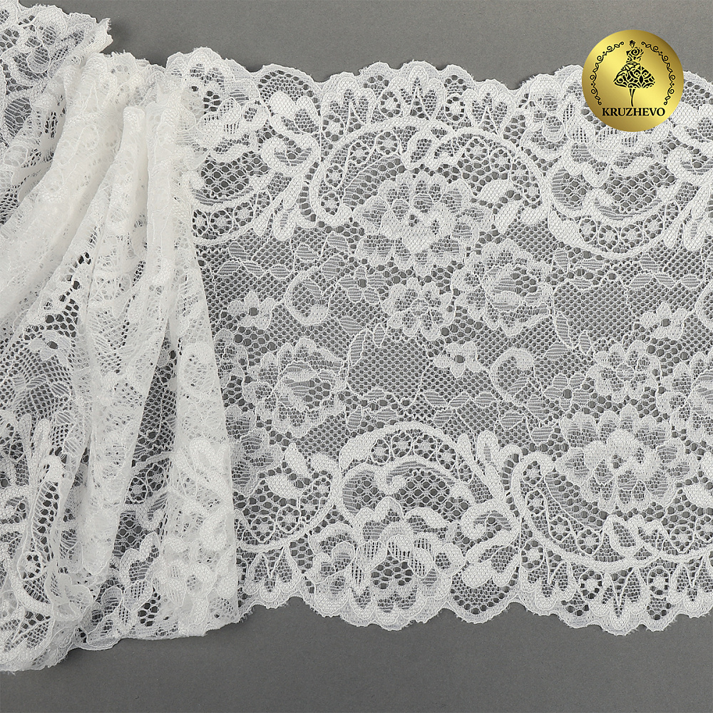 Очень красивый дизайн широкого эластичного кружева. Кружево тоненькое, очень нежное. Высокого качества. Очень актуальный дизайн в этом сезоне. Хорошо тянется. Идеально подходит для нижнего белья, одежды, домашнего текстиля и других изделий.