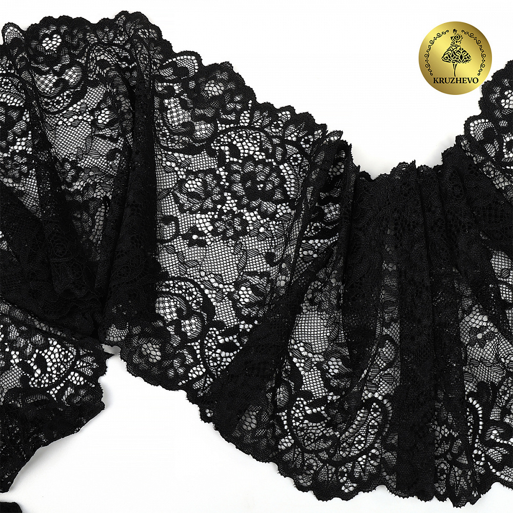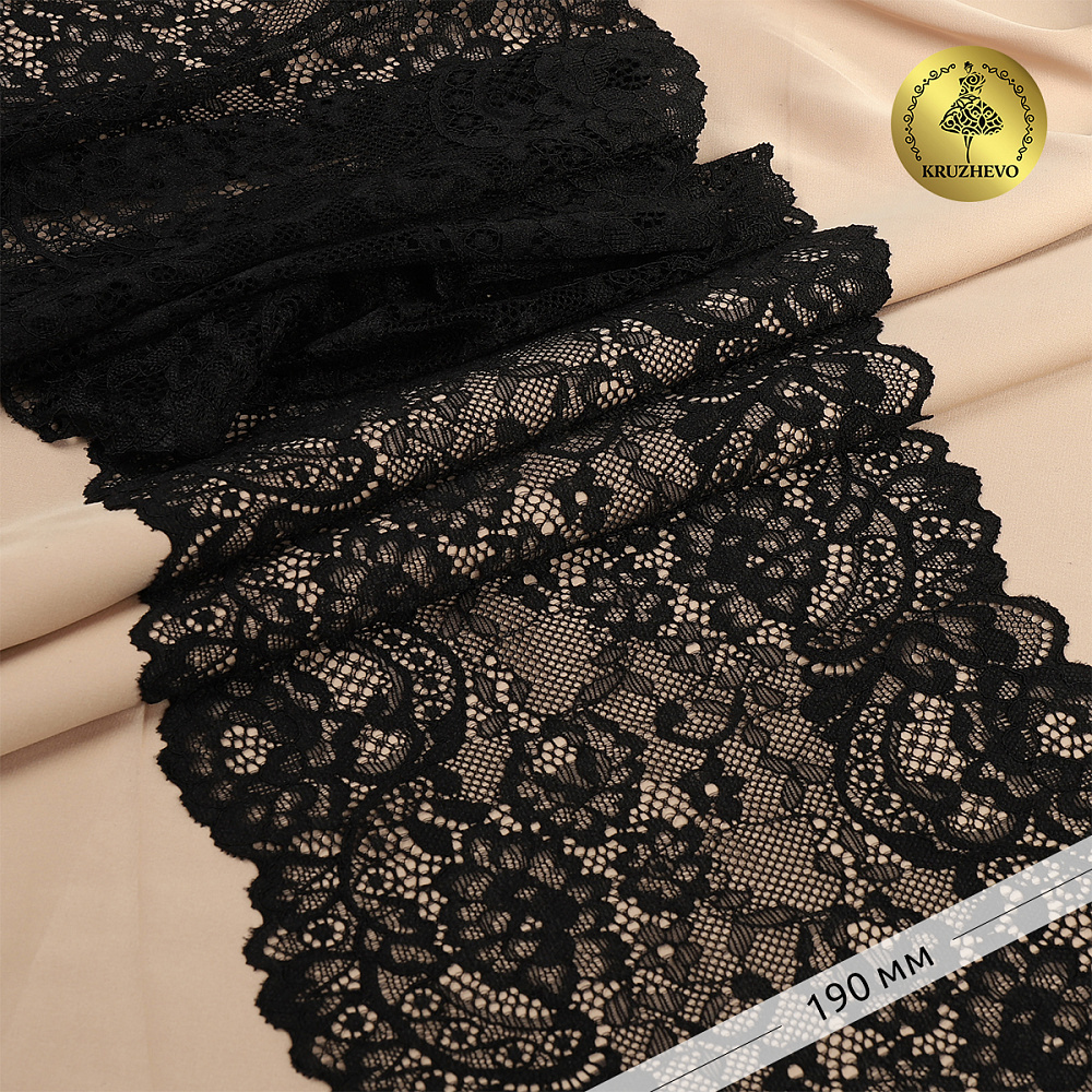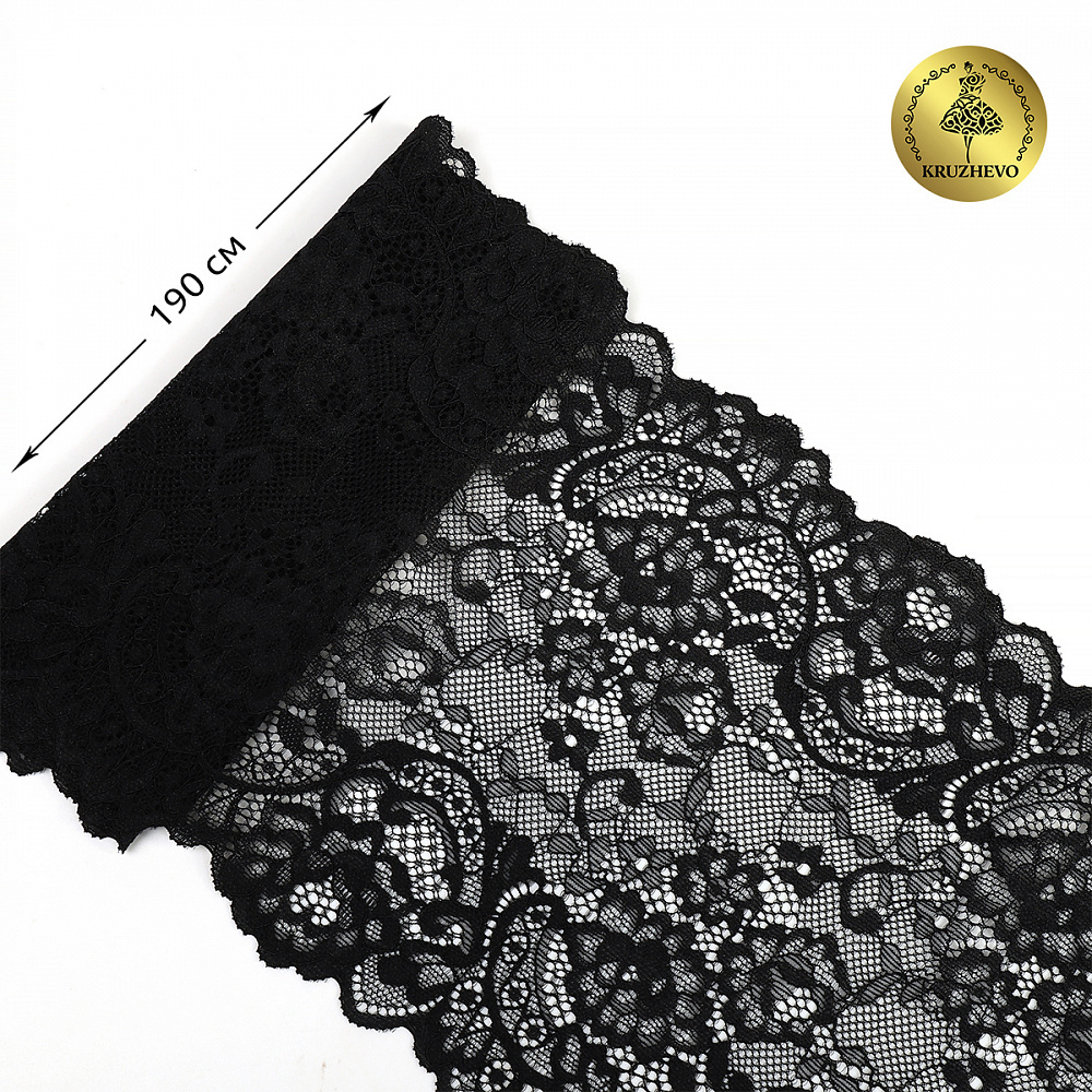 Кружево бельевое эластичное 190 мм / 10 м, 6378, цв.02 черный, Kruzhevo