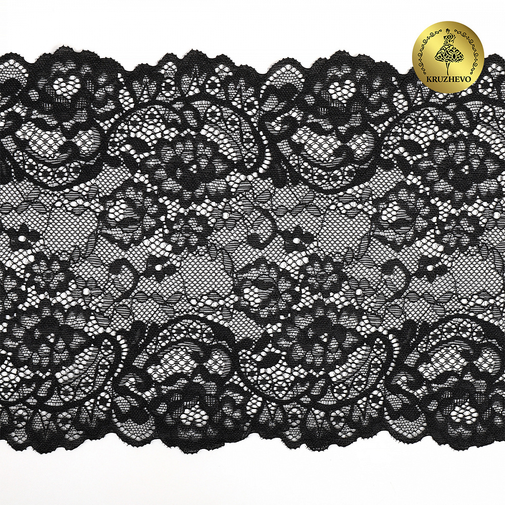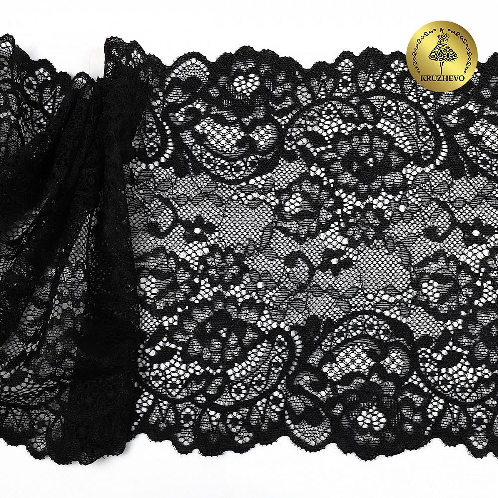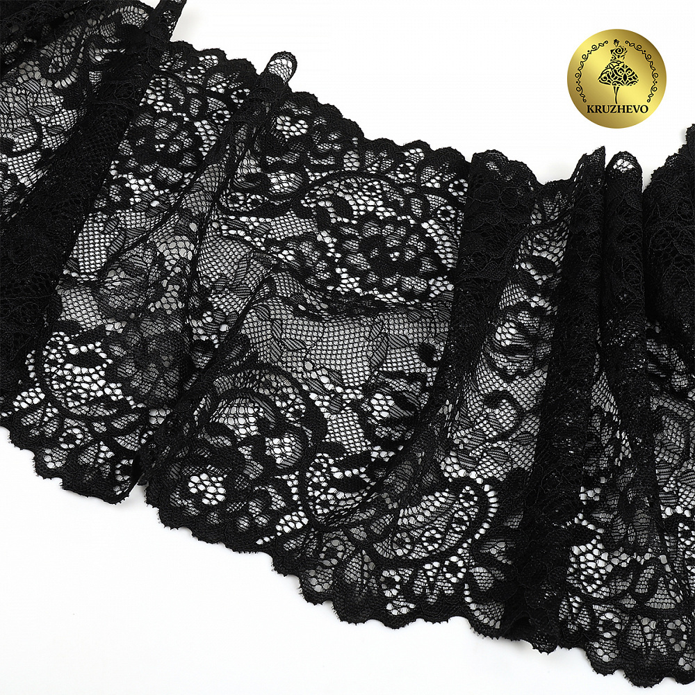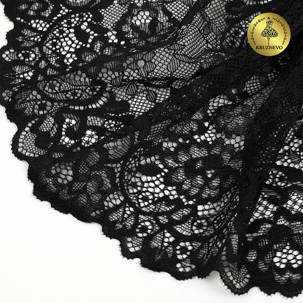 Кружево бельевое эластичное 190 мм / 10 м, 6378, цв.02 черный, Kruzhevo